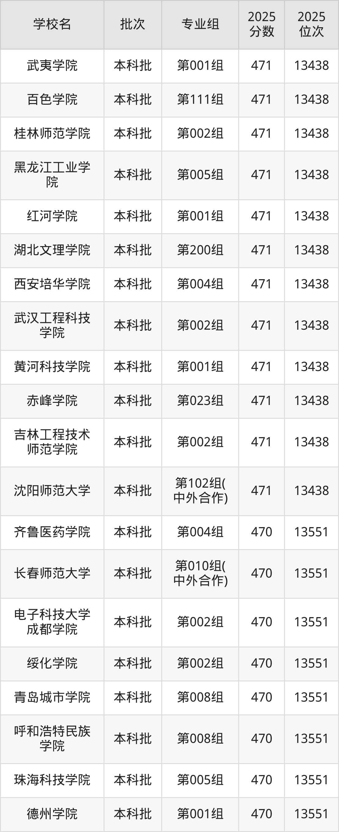 这些都是2026年高考历史类13552名~13678名考生可以报考的大学,更多学校名单如下表所示: