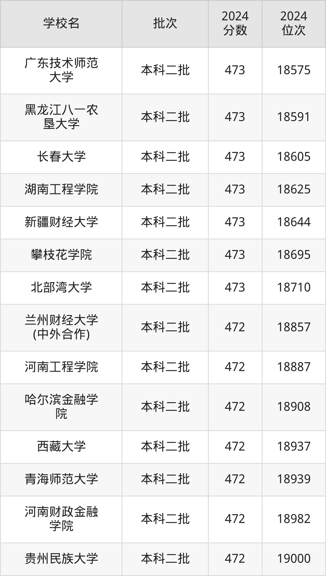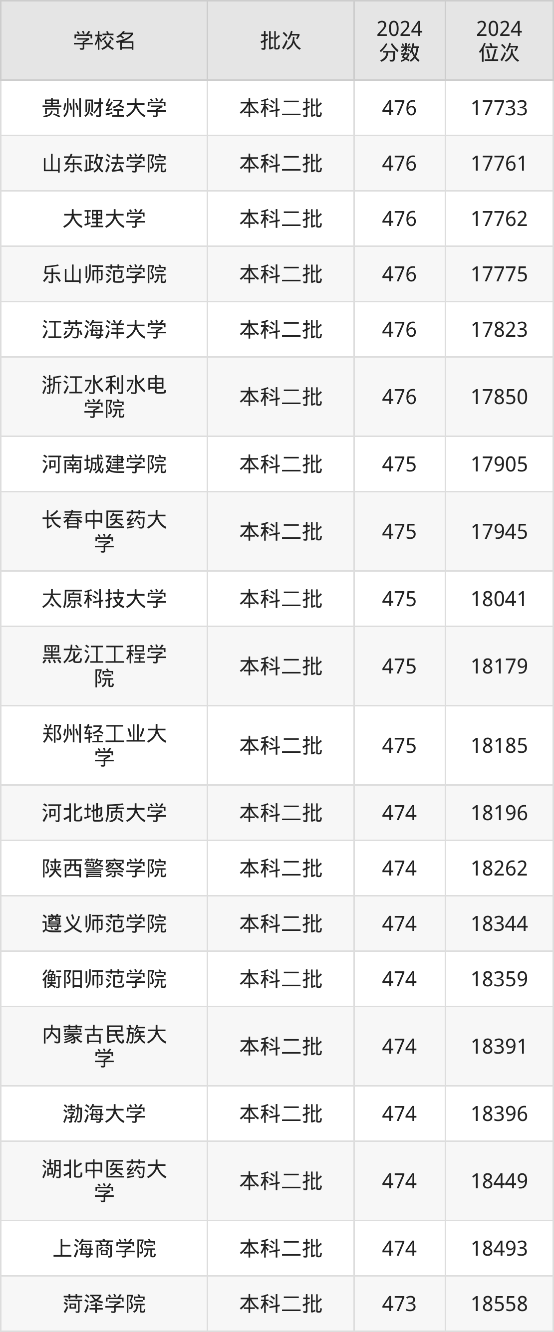 这些都是2025年高考文科18189名~18511名考生可以报考的大学,更多学校名单如下表所示: