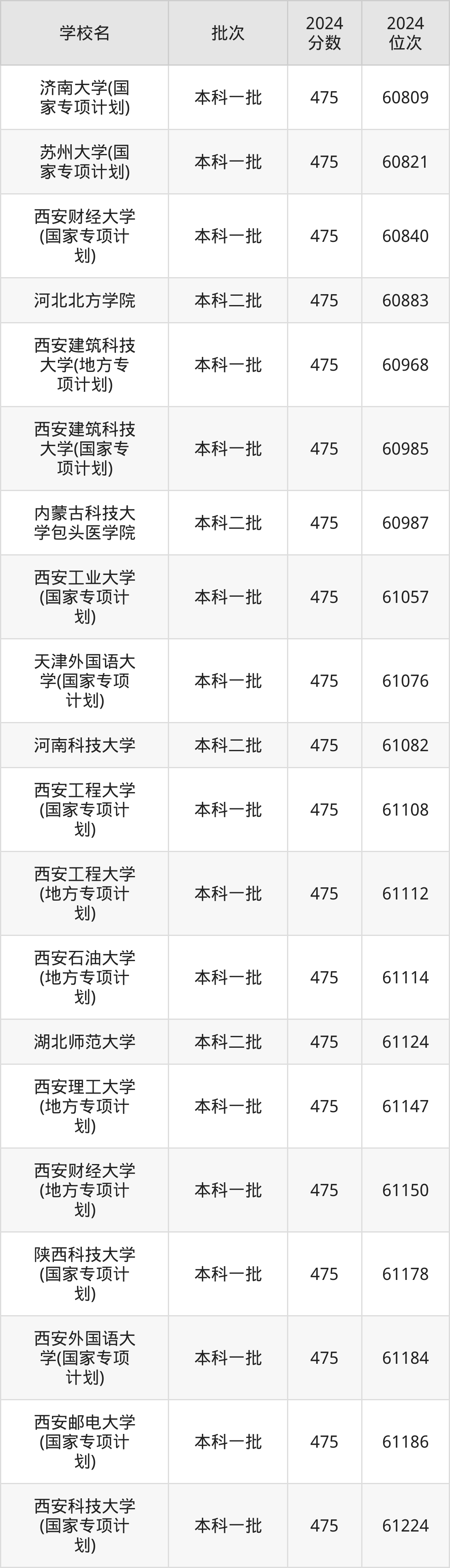 2024年陕西高考文科474分(18189名~18511名)能上的大学有河北地质大学、内蒙古民族大学、渤海大学、上海商学院等。