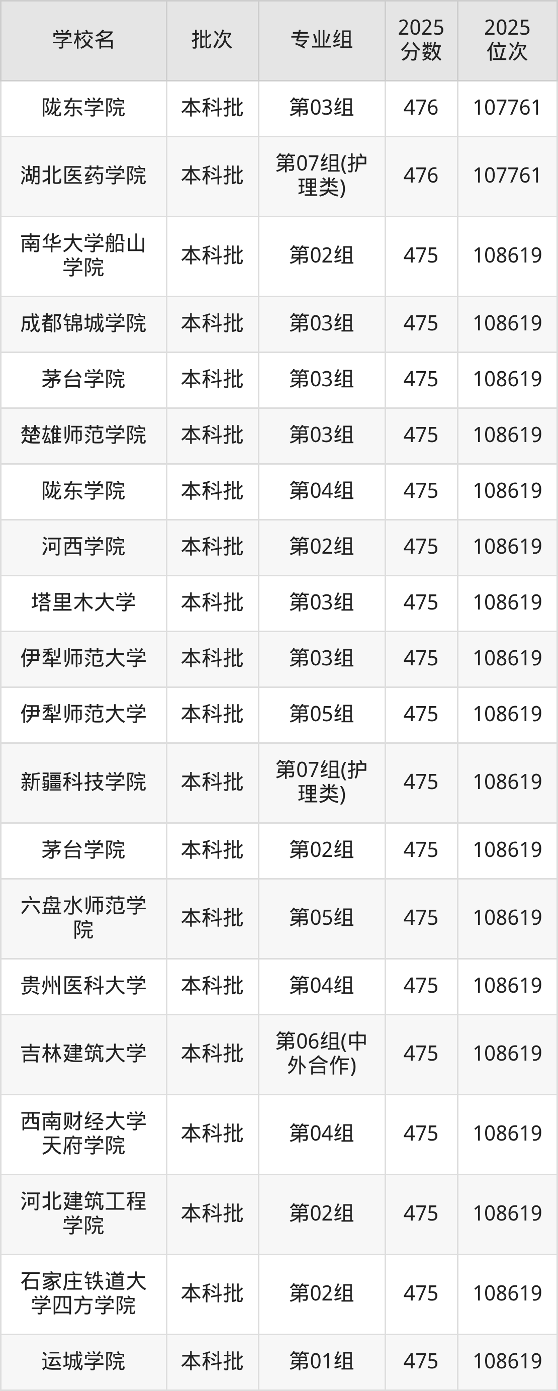 2025年湖北高考物理类475分(107762名~108619名)能上的大学有河北建筑工程学院第02组、石家庄铁道大学四方学院第02组、石家庄铁道大学四方学院第03组、运城学院第01组等。