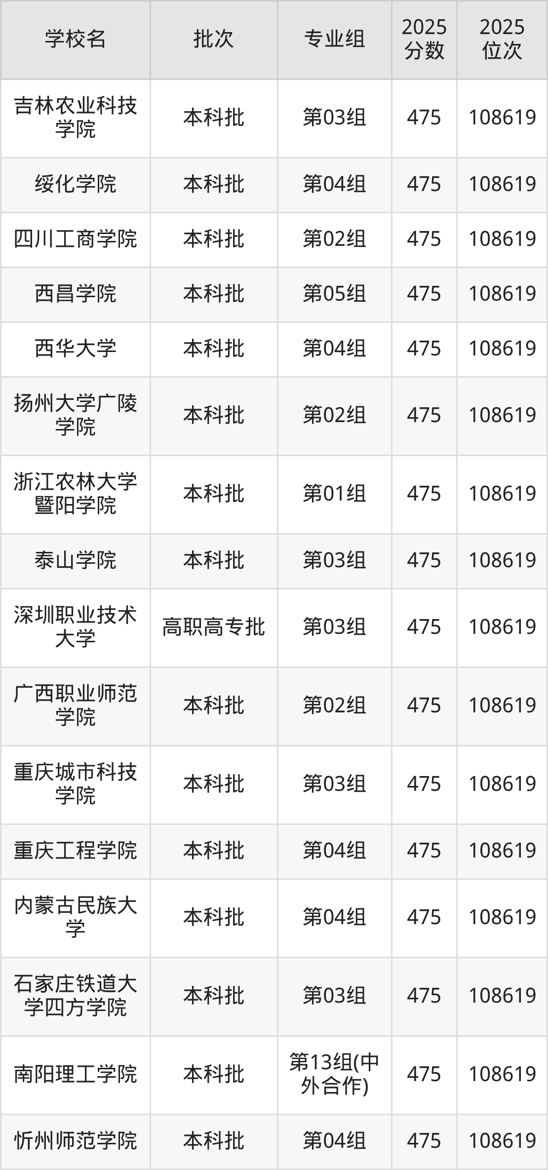 这些都是2026年高考物理类107762名~108619名考生可以报考的大学,更多学校名单如下表所示: