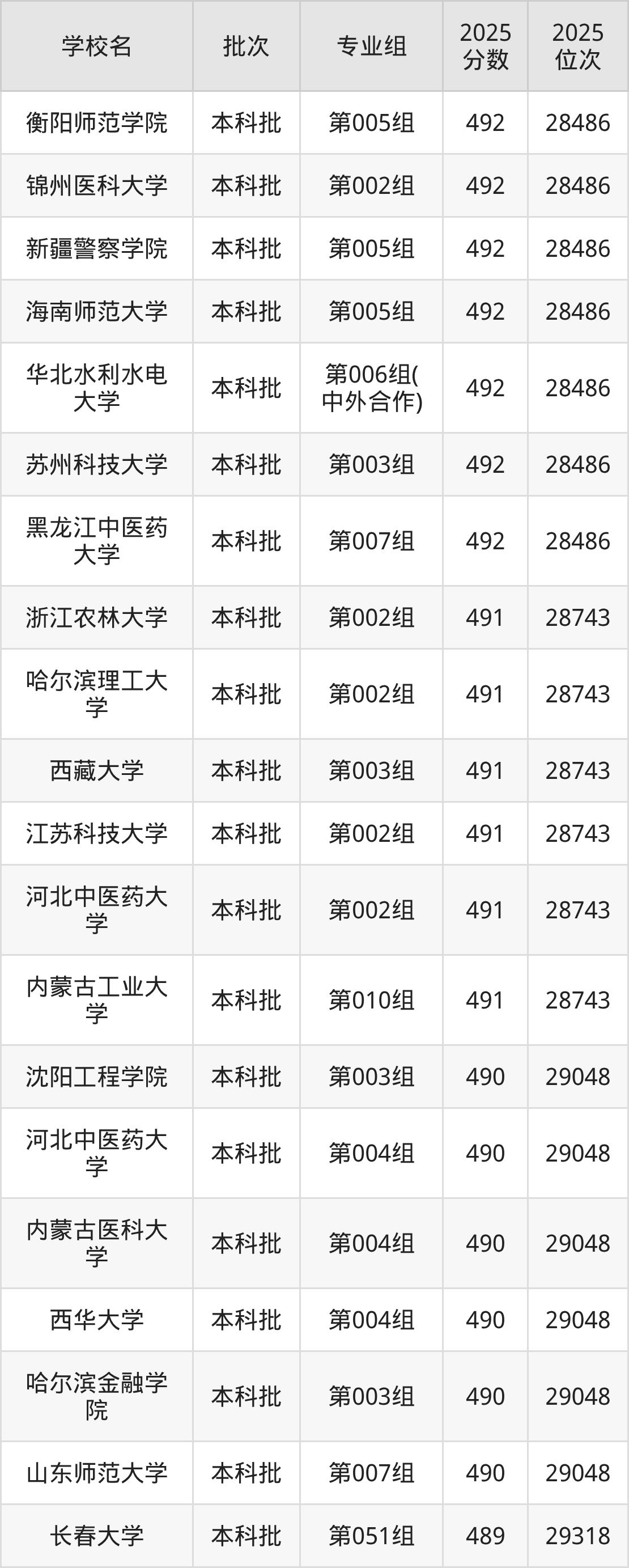 2025年吉林高考物理类490分(28744名~29048名)能上的大学有河北中医药大学第004组、内蒙古医科大学第004组、沈阳工程学院第003组、哈尔滨金融学院第003组等。