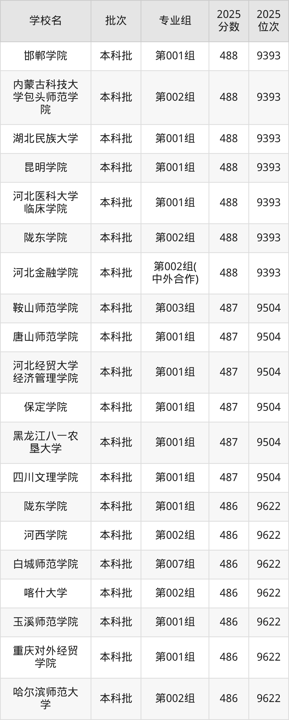 这些都是2026年高考历史类9047名~9137名考生可以报考的大学,更多学校名单如下表所示: