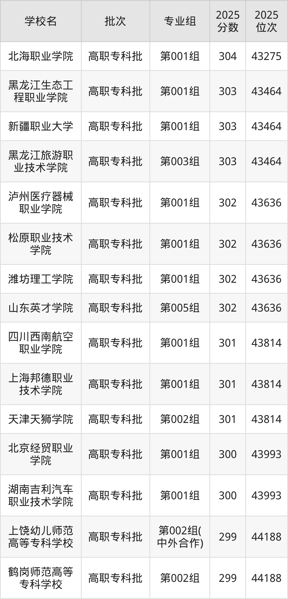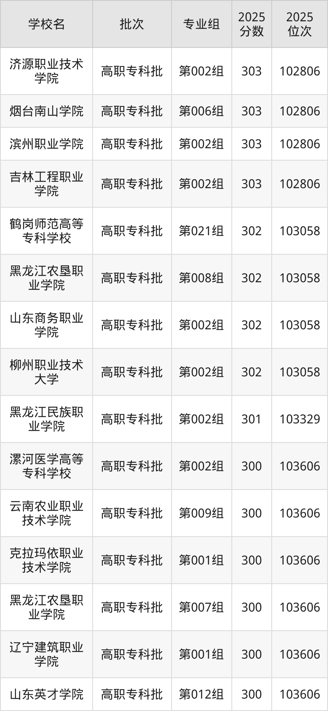 2025年黑龙江高考物理类301分(103059名~103329名)能上的大学有黑龙江民族职业学院第002组。