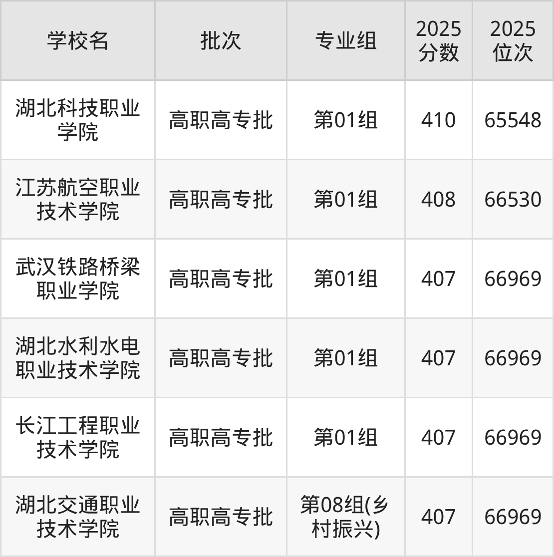 2025年湖北高考历史类408分(66027名~66530名)能上的大学有江苏航空职业技术学院第01组。