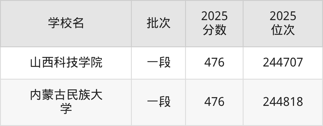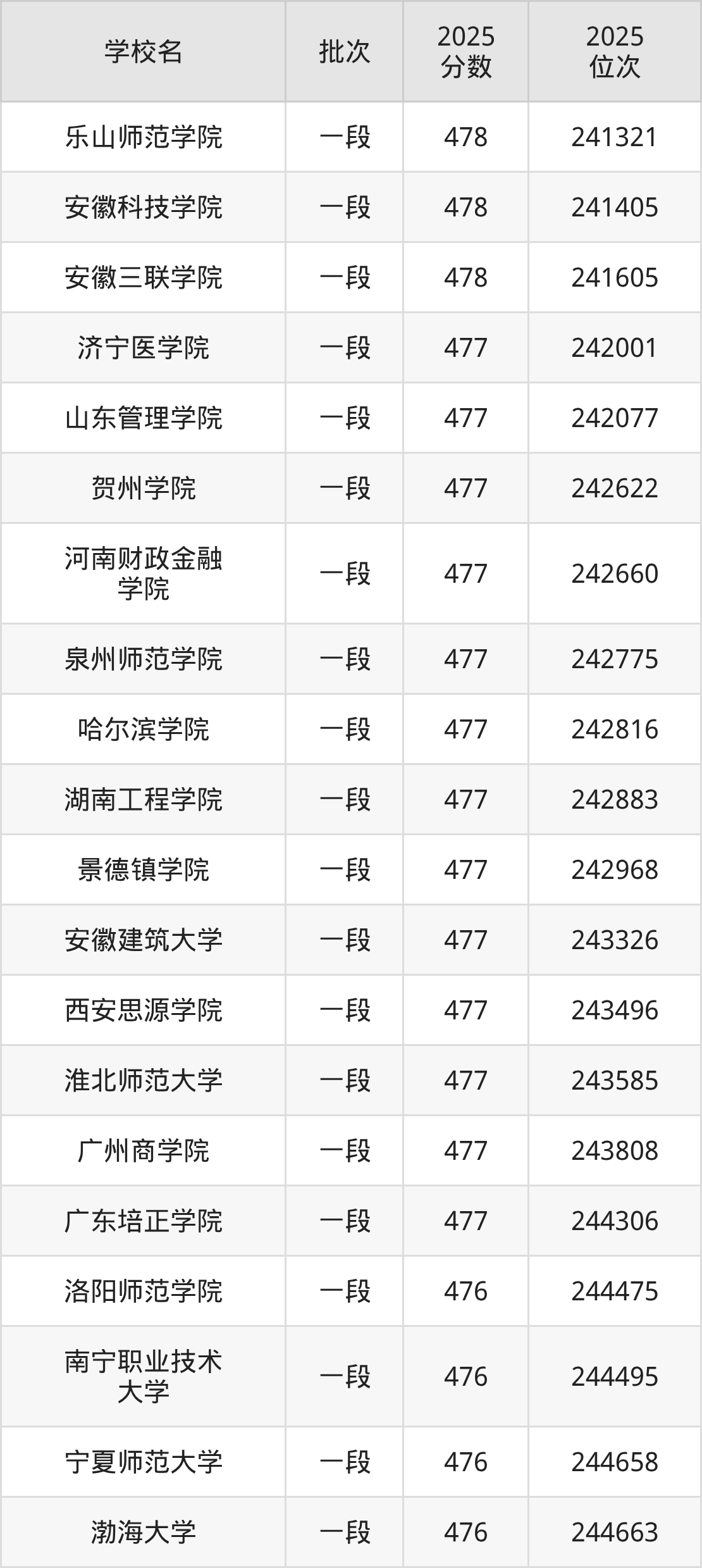 这些都是2026年高考241815名~244345名考生可以报考的大学,更多学校名单如下表所示: