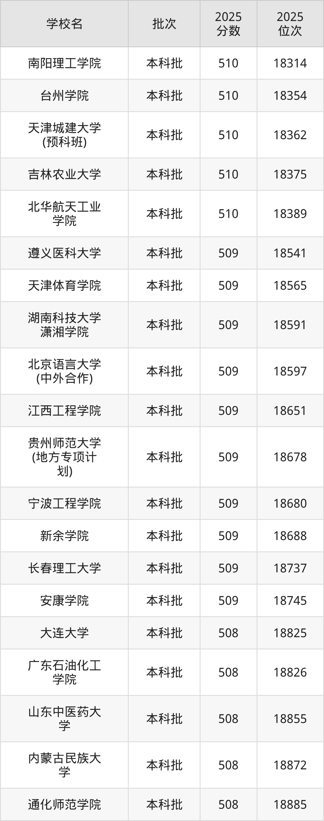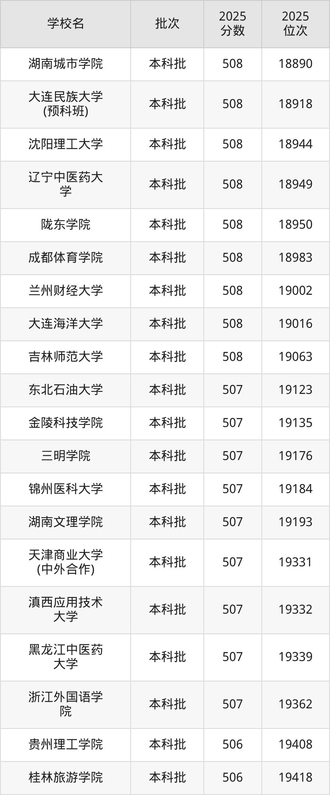 2025年贵州高考历史类508分(18756名~19090名)能上的大学有沈阳理工大学、吉林师范大学、湖南城市学院、辽宁中医药大学等。