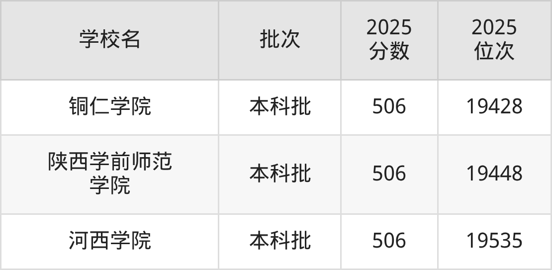 这些都是2026年高考历史类18756名~19090名考生可以报考的大学,更多学校名单如下表所示: