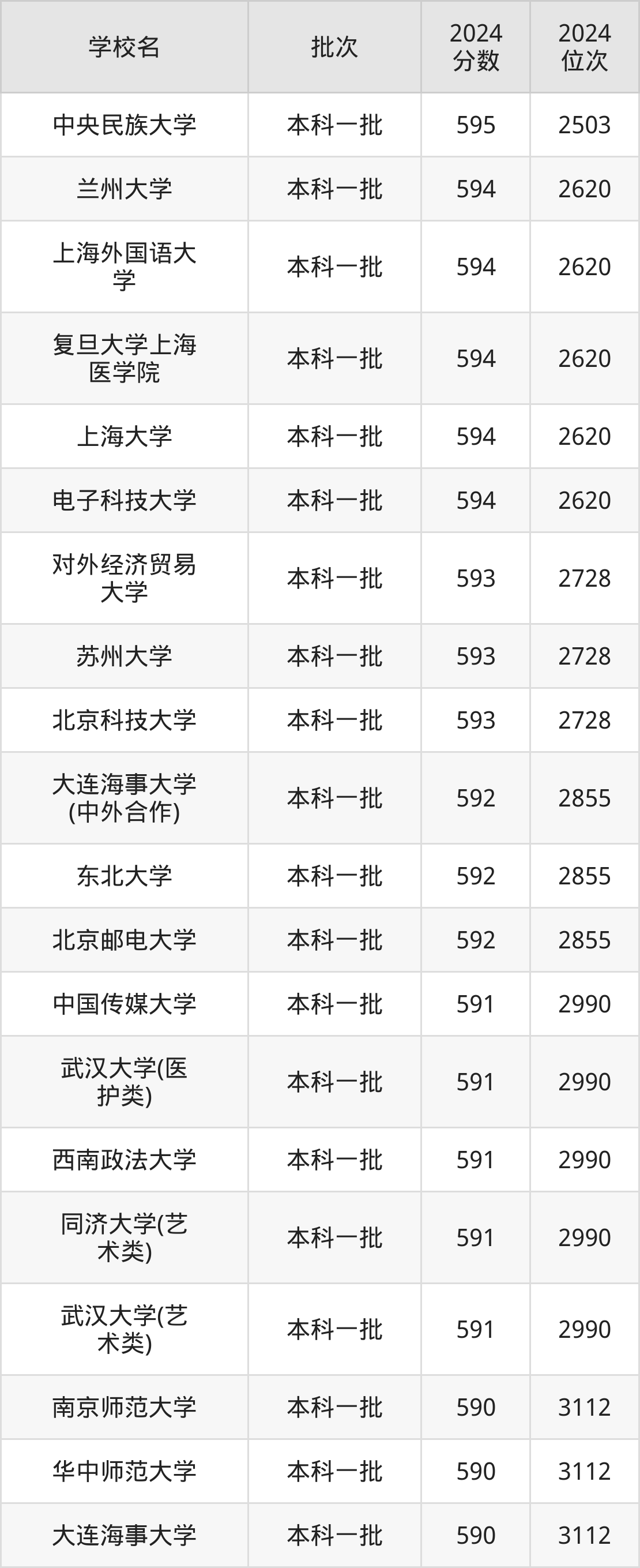 2024年河南高考文科590分(2991名~3112名)能上的大学有大连海事大学、华中师范大学、南京师范大学。