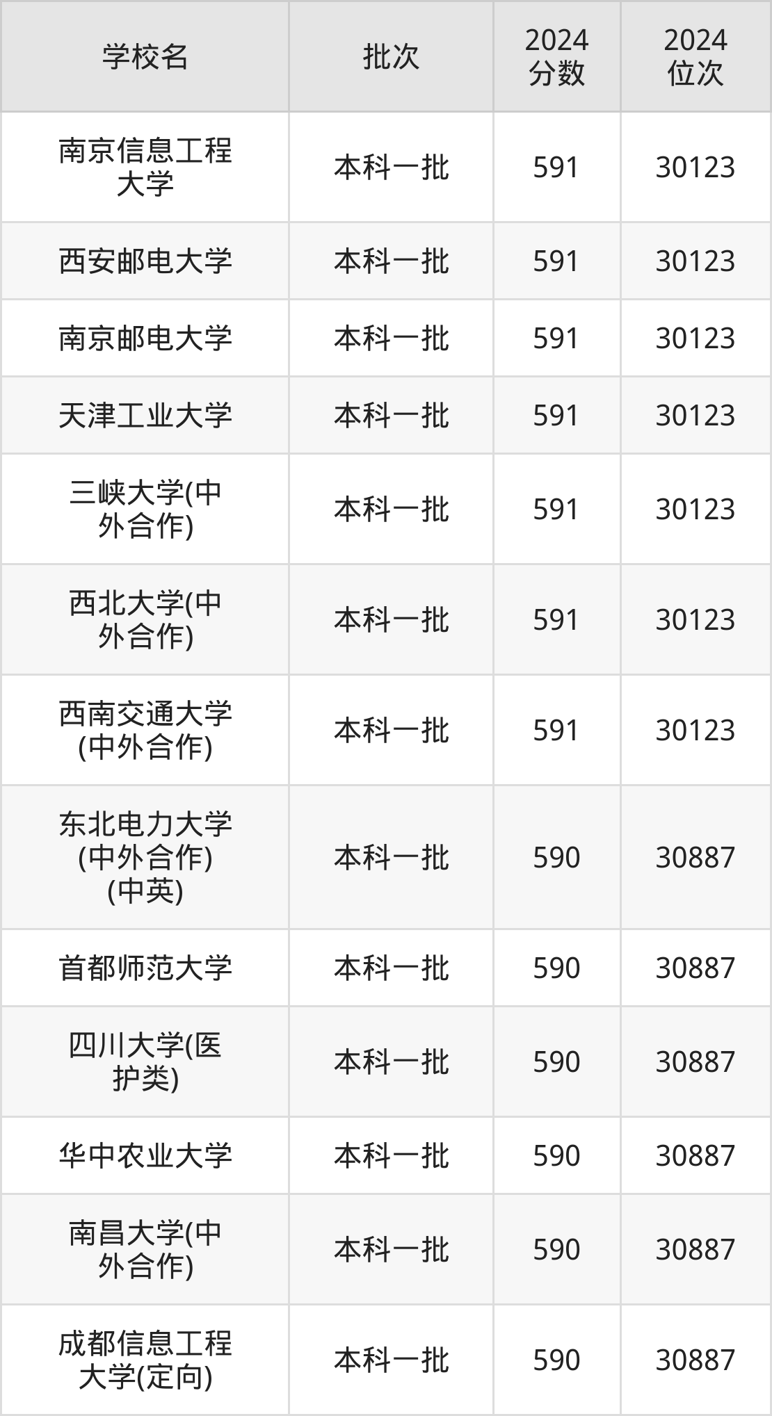 这些都是2025年高考理科30124名~30887名考生可以报考的大学,更多学校名单如下表所示: