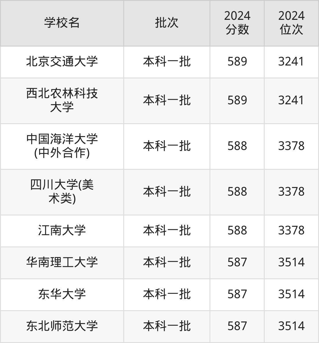 由于高考录取分数线历年波动较大,因此本文以该分数对应的位次排名为大家整理能上的大学名单。