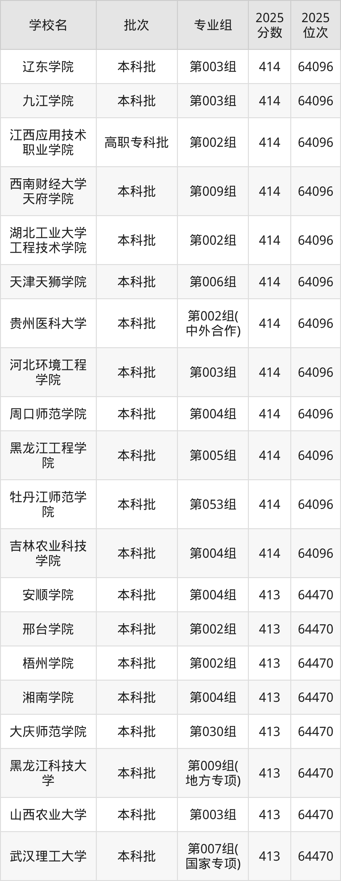 这些都是2026年高考物理类64471名~64900名考生可以报考的大学,更多学校名单如下表所示: