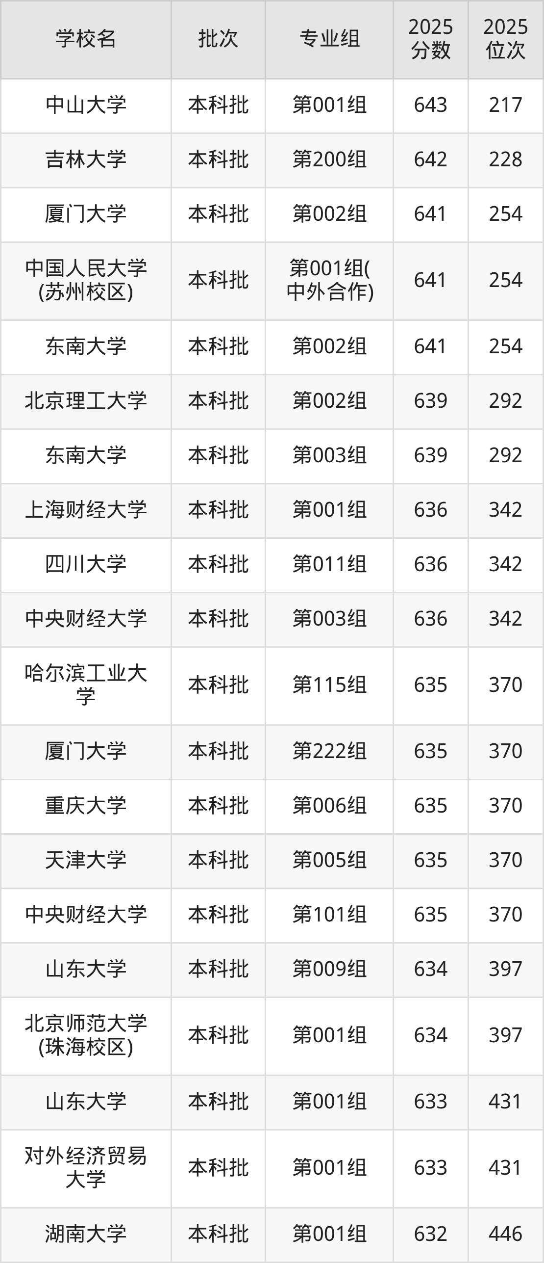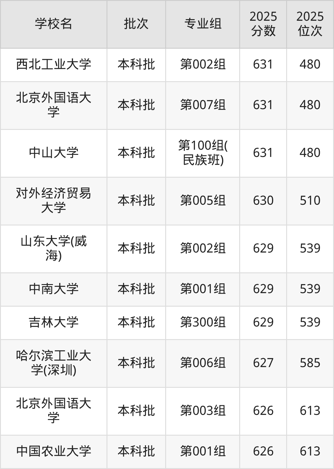 由于高考录取分数线历年波动较大,因此本文以该分数对应的位次排名为大家整理能上的大学名单。