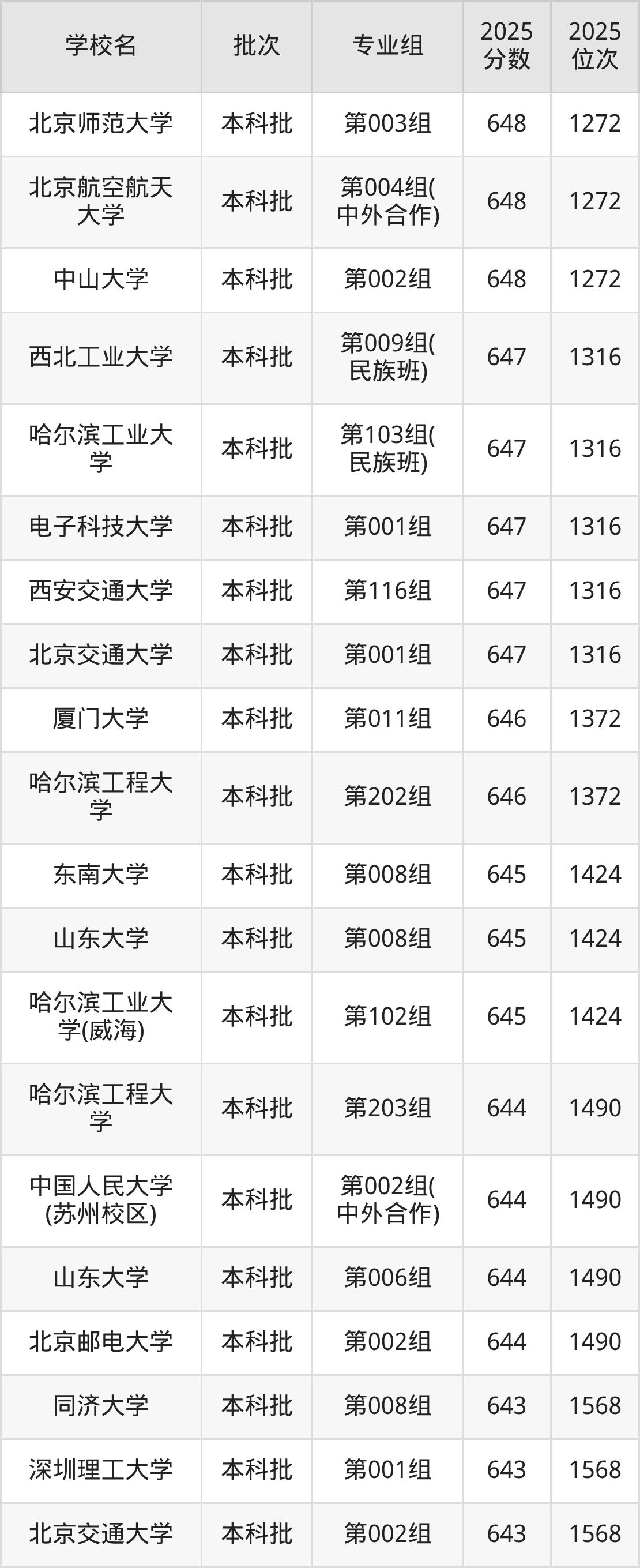 2025年内蒙古高考历史类650分(120名~134名)能上的大学有北京师范大学第001组。