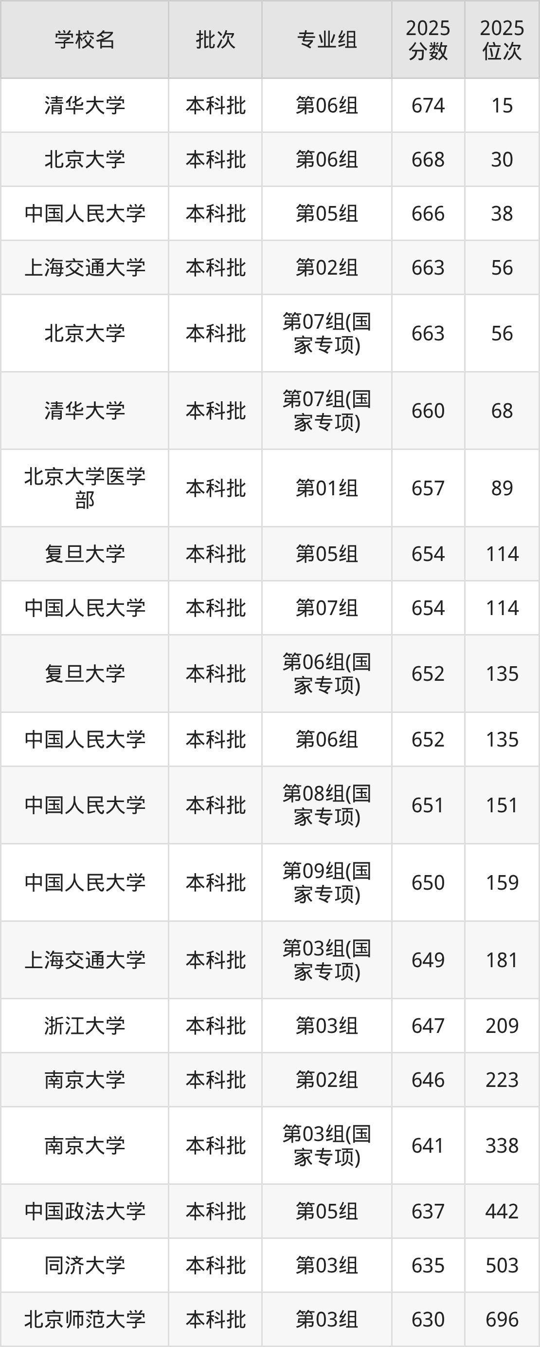 2025年湖北高考历史类645分(224名~242名)录取位次低于该区间(较稳妥)的有南京大学第03组(国家专项)(338名)、中国政法大学第05组(442名)等;录取位次高于该区间(可冲)的有南京大学第02组(223名)、浙江大学第03组(209名)等。