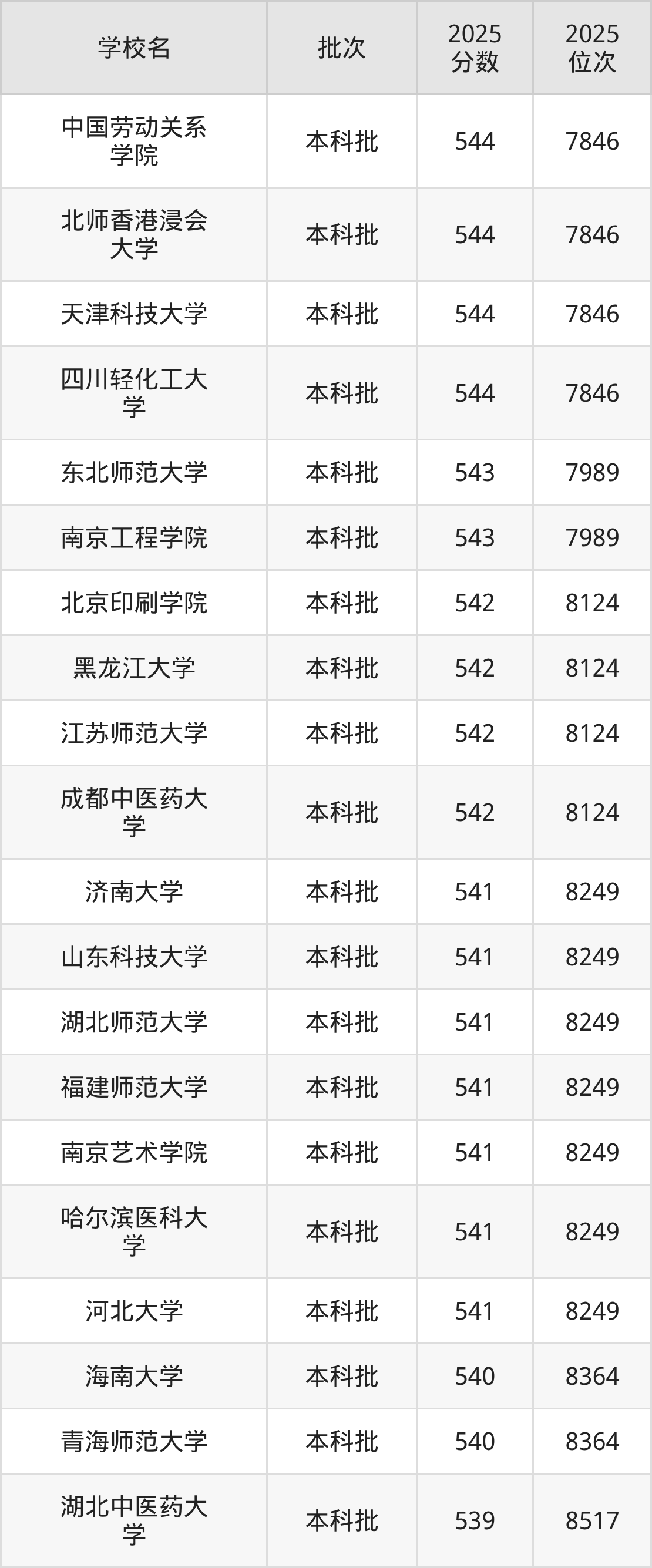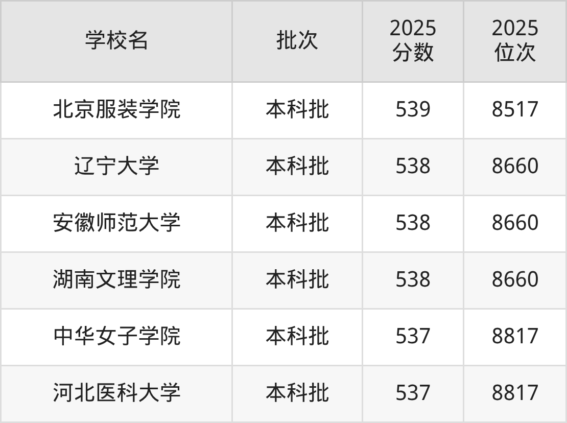 这些都是2026年高考历史类8250名~8364名考生可以报考的大学,更多学校名单如下表所示: