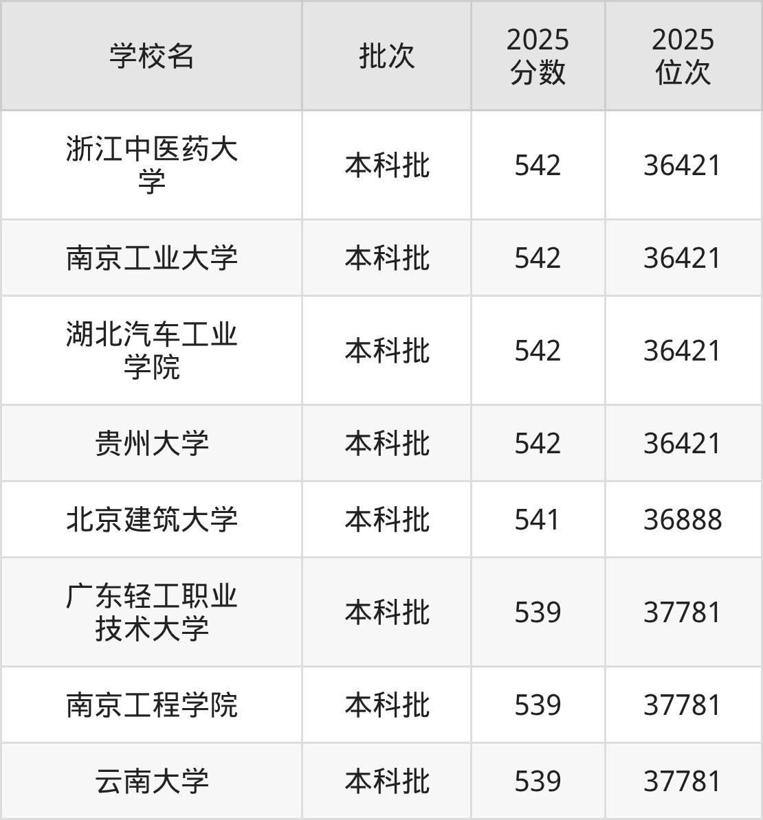 2025年辽宁高考物理类540分(36889名~37320名)录取位次低于该区间(较稳妥)的有南京工程学院(37781名)、广东轻工职业技术大学(37781名)等;录取位次高于该区间(可冲)的有北京建筑大学(36888名)、贵州大学(36421名)等。