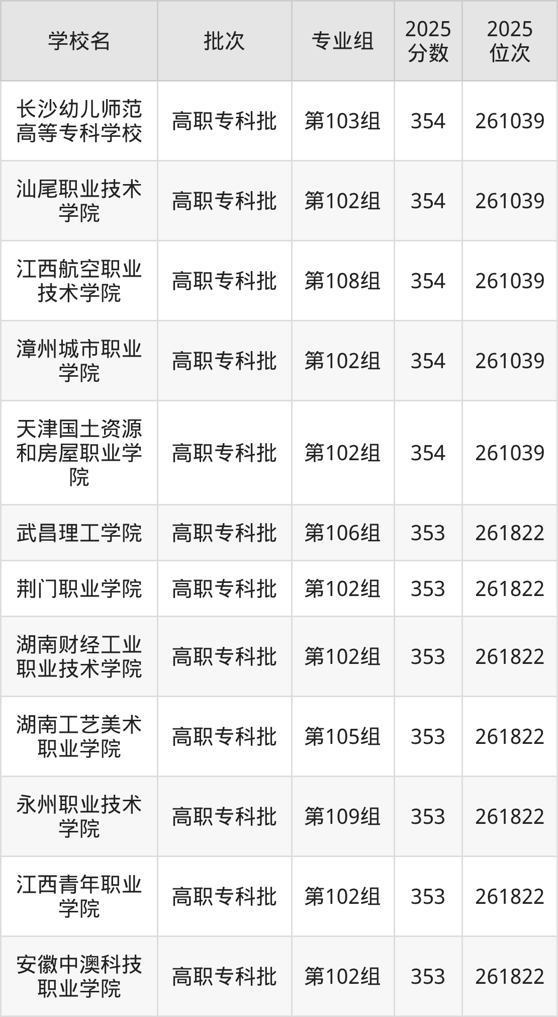 2025年湖南高考物理类353分(261040名~261822名)能上的大学有安徽中澳科技职业学院第102组、江西青年职业学院第102组、永州职业技术学院第109组、湖南工艺美术职业学院第105组等。