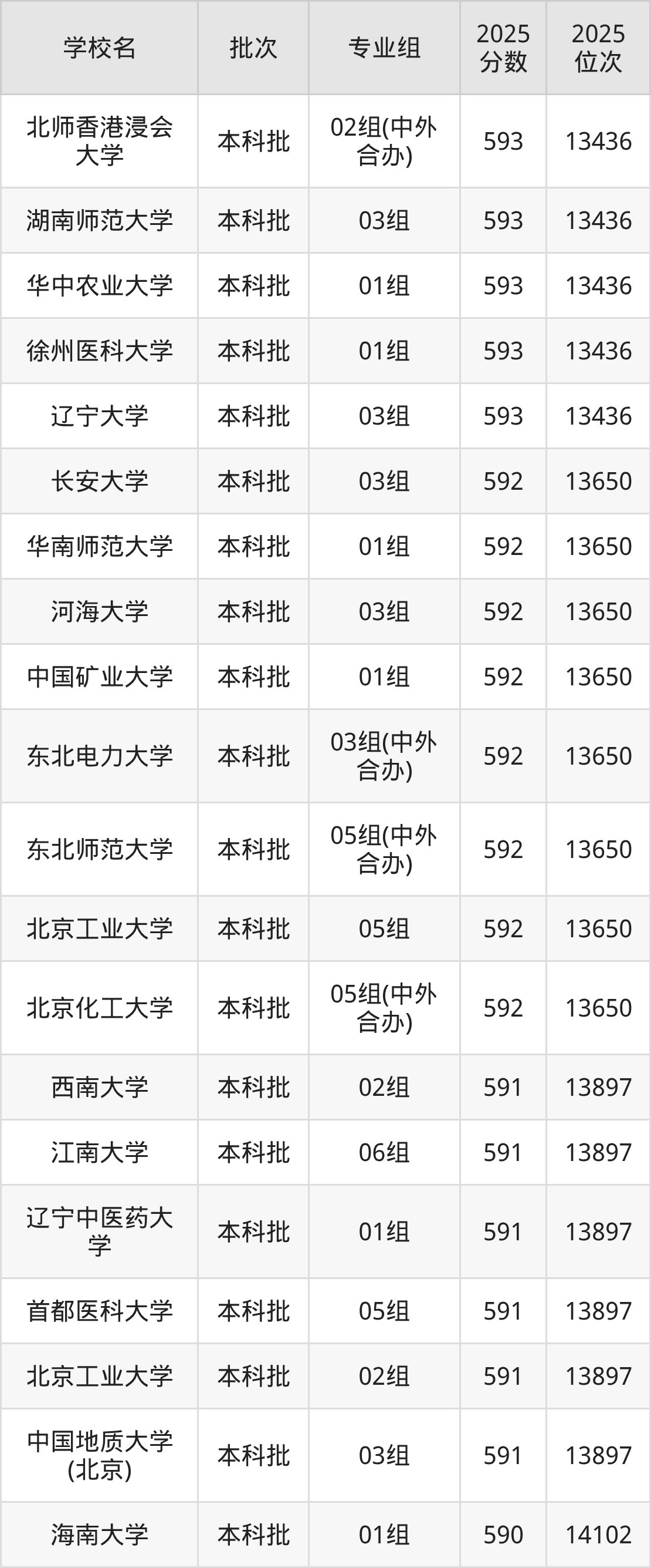 这些都是2026年高考13898名~14102名考生可以报考的大学,更多学校名单如下表所示: