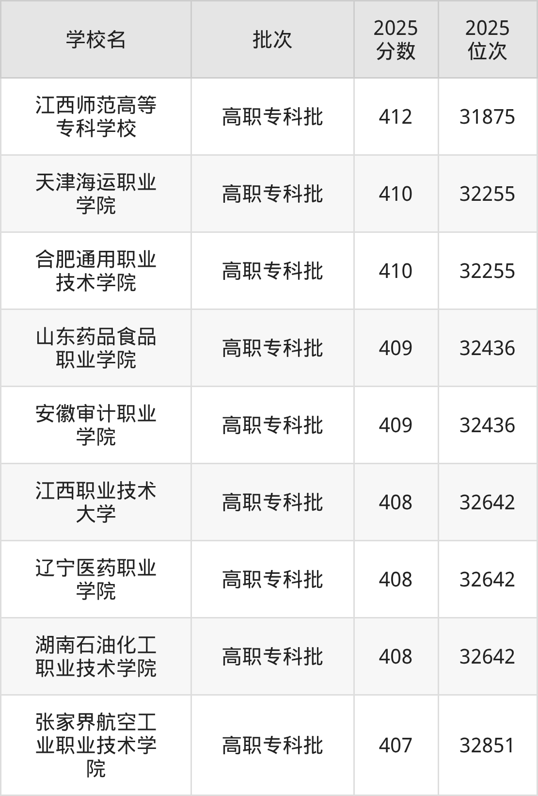 2025年辽宁高考历史类409分(32256名~32436名)能上的大学有山东药品食品职业学院、安徽审计职业学院。