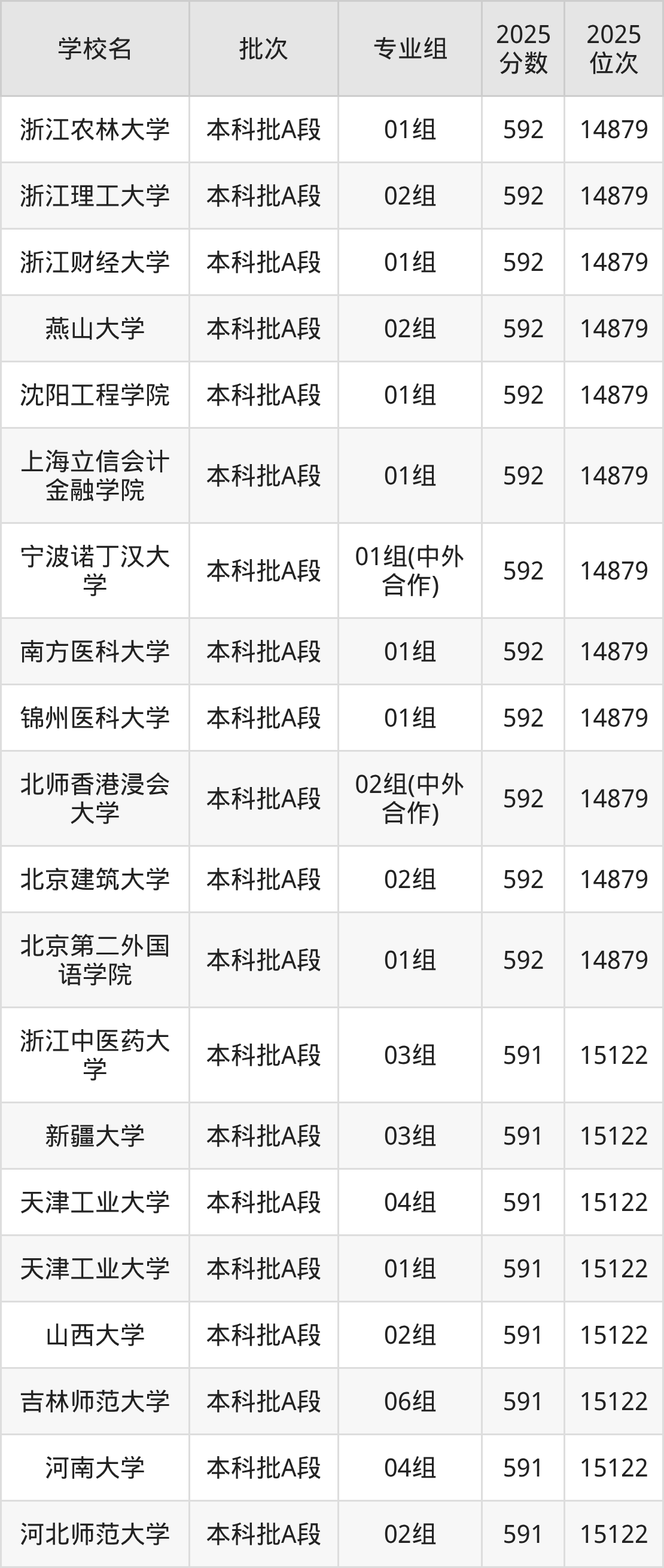 这些都是2026年高考15351名~15580名考生可以报考的大学,更多学校名单如下表所示: