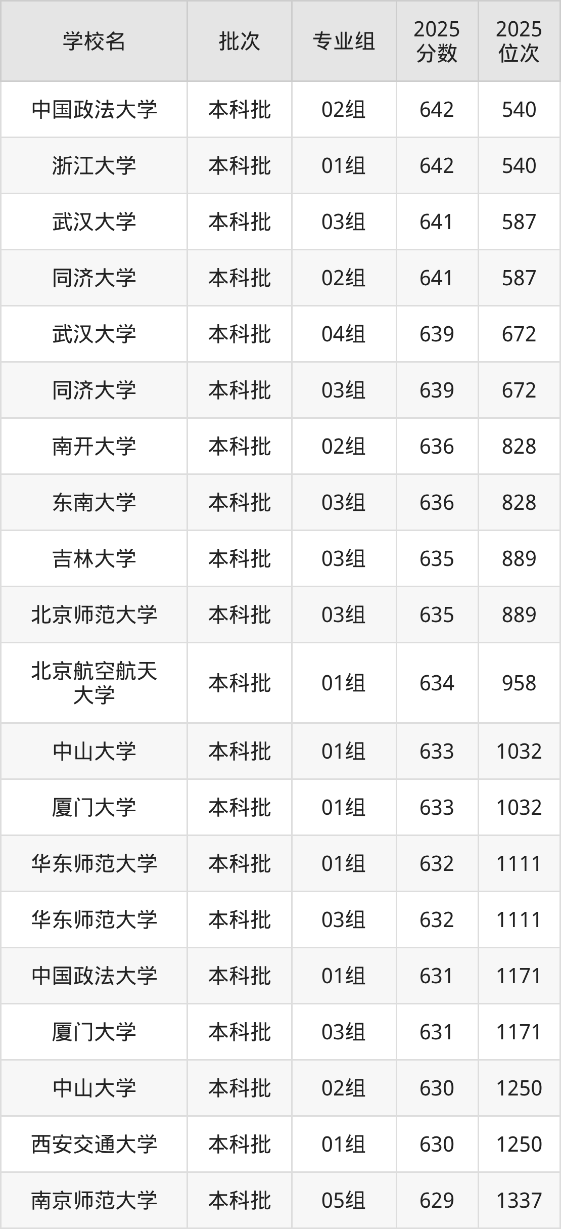 2025年江苏高考历史类632分(1033名~1111名)能上的大学有华东师范大学01组、华东师范大学03组。