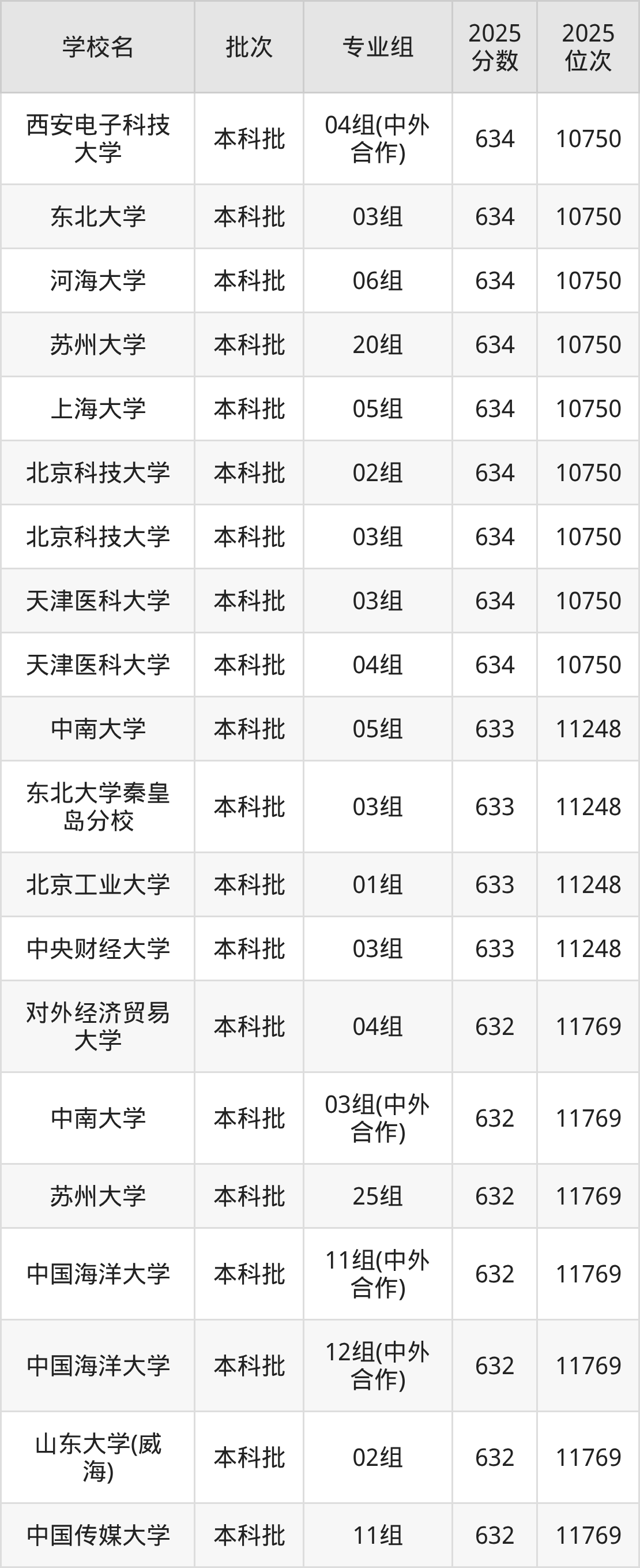 2025年江苏高考物理类632分(11249名~11769名)能上的大学有苏州大学25组、中国海洋大学11组(中外合作)、中国海洋大学12组(中外合作)、山东大学(威海)02组等。