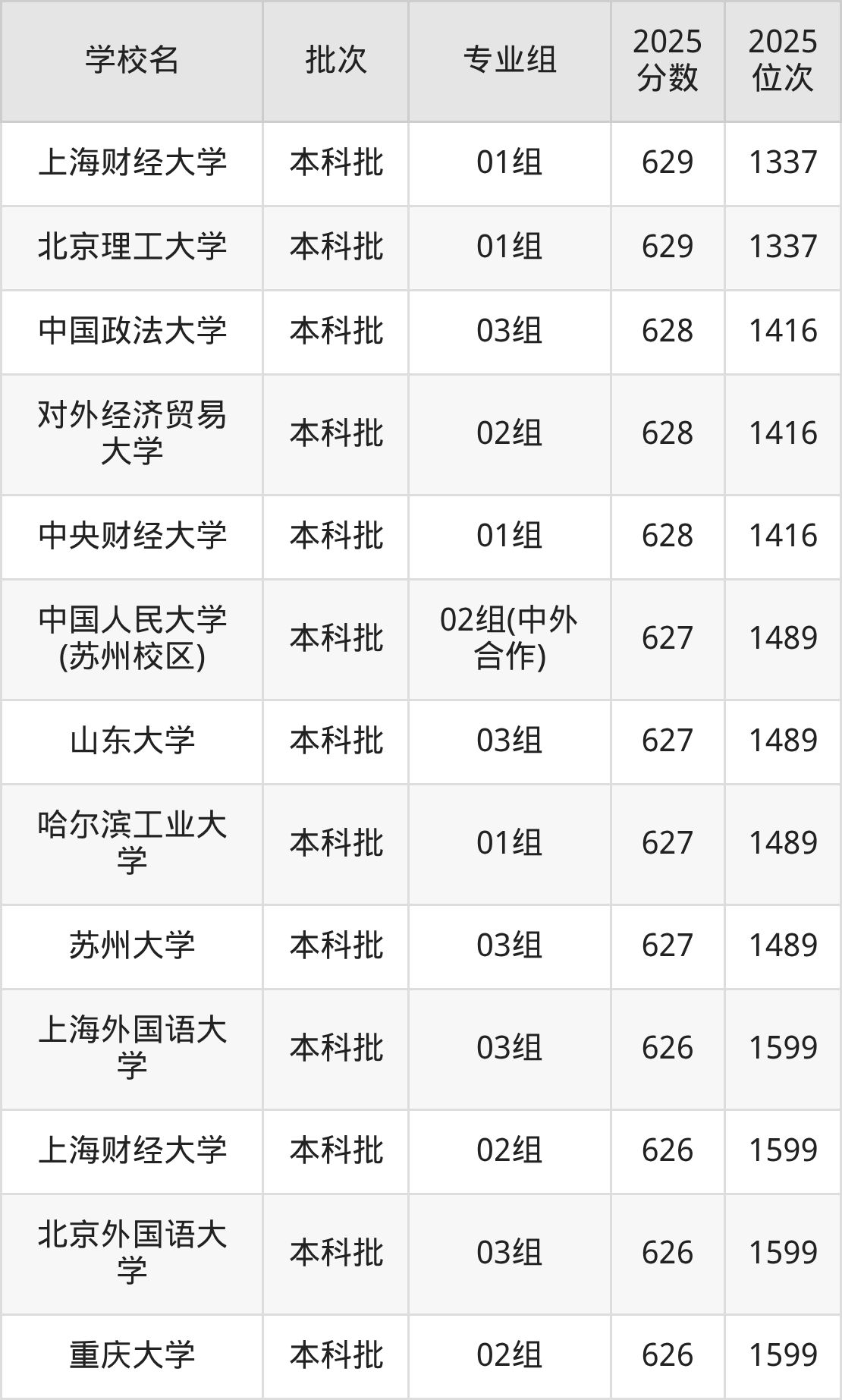 由于高考录取分数线历年波动较大,因此本文以该分数对应的位次排名为大家整理能上的大学名单。