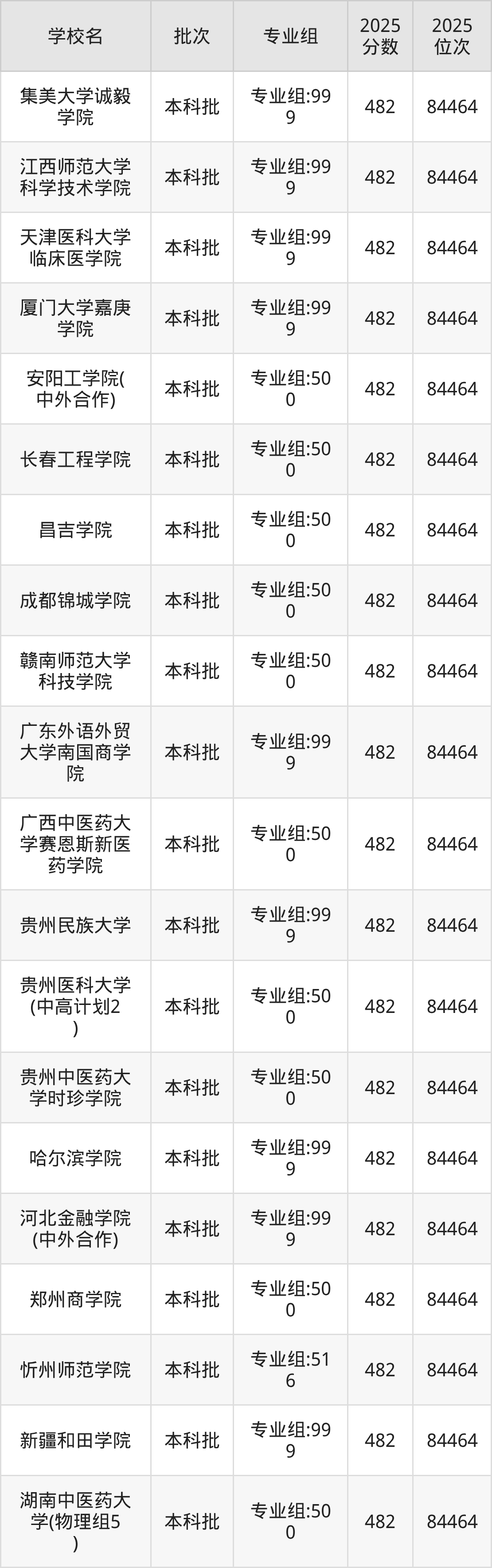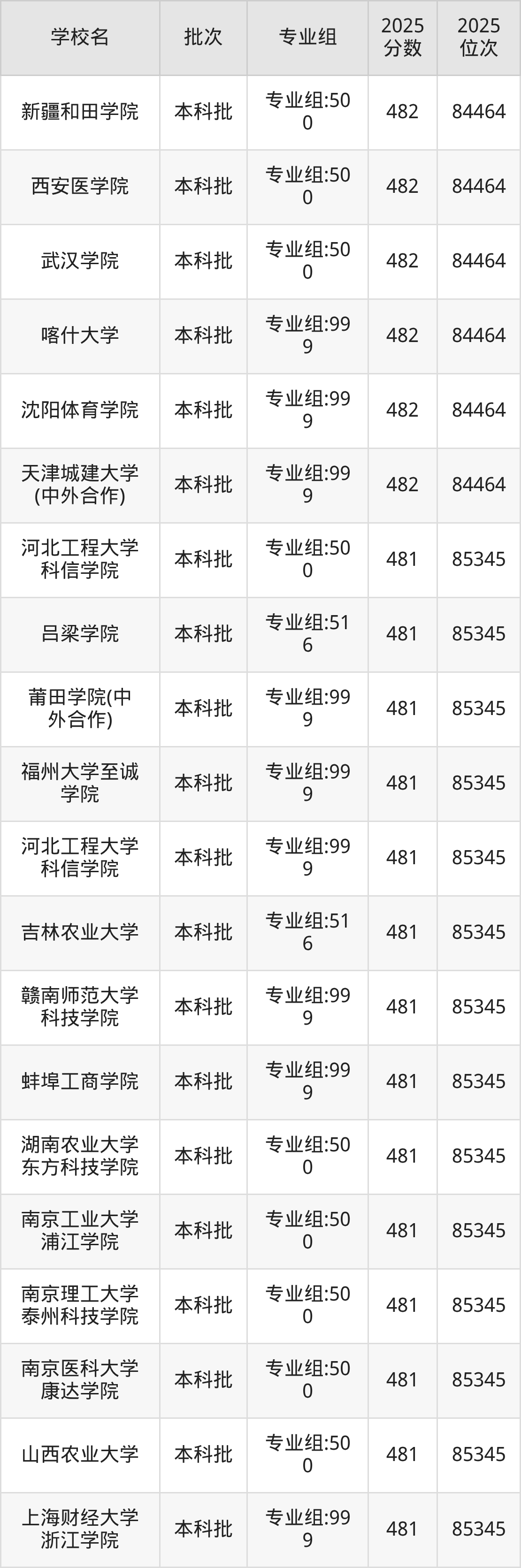 这些都是2026年高考物理类84465名~85345名考生可以报考的大学,更多学校名单如下表所示: