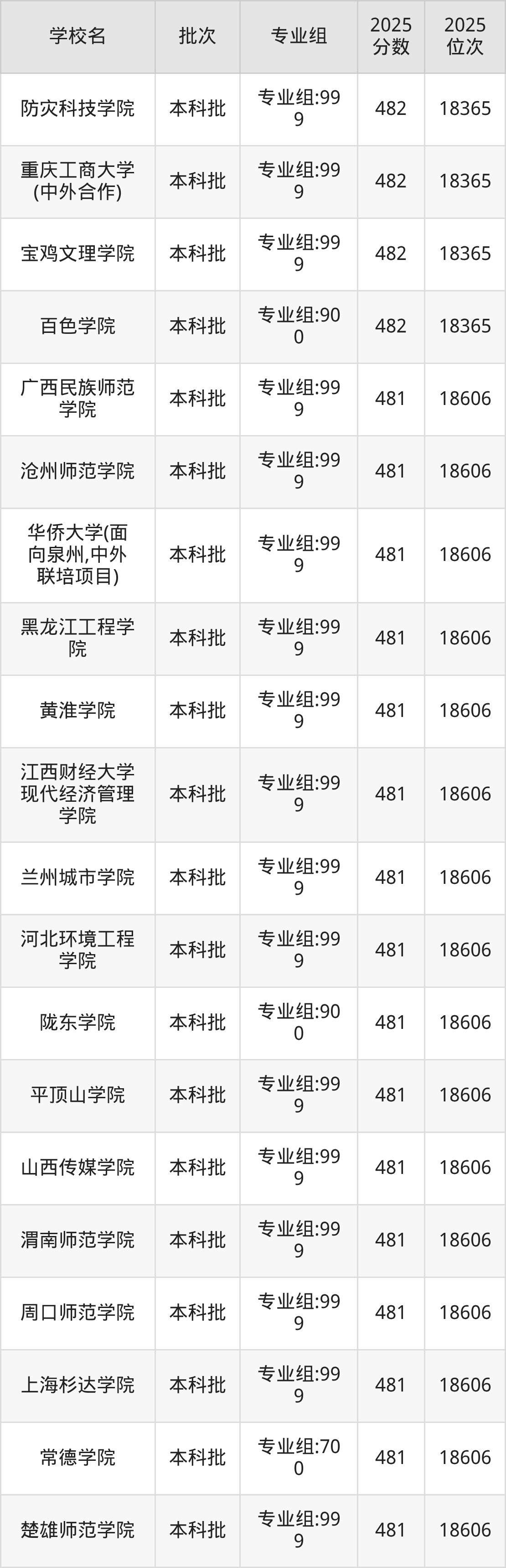 2025年福建高考历史类481分(18366名~18606名)能上的大学有华侨大学(面向泉州,中外联培项目)专业组:999、沧州师范学院专业组:999、常德学院专业组:700、楚雄师范学院专业组:999等。