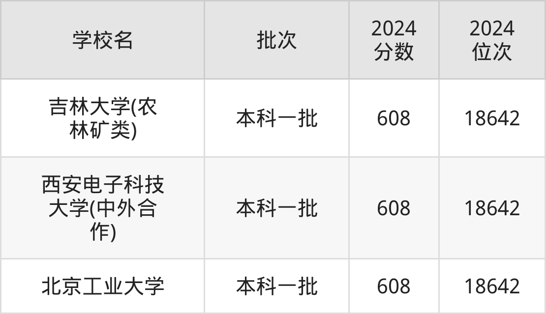 这些都是2025年高考理科18643名~19256名考生可以报考的大学,更多学校名单如下表所示: