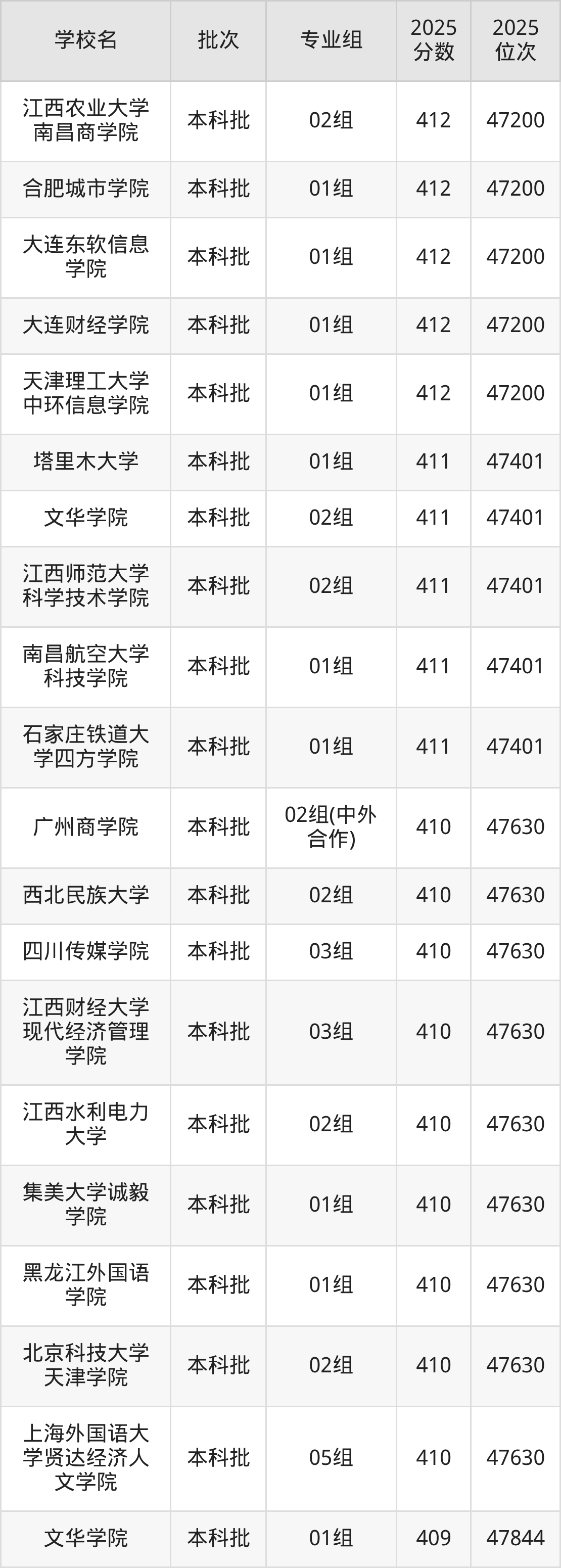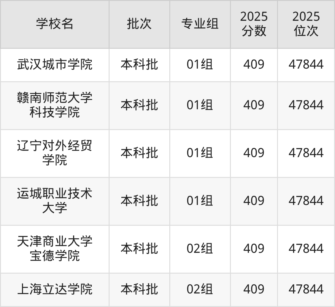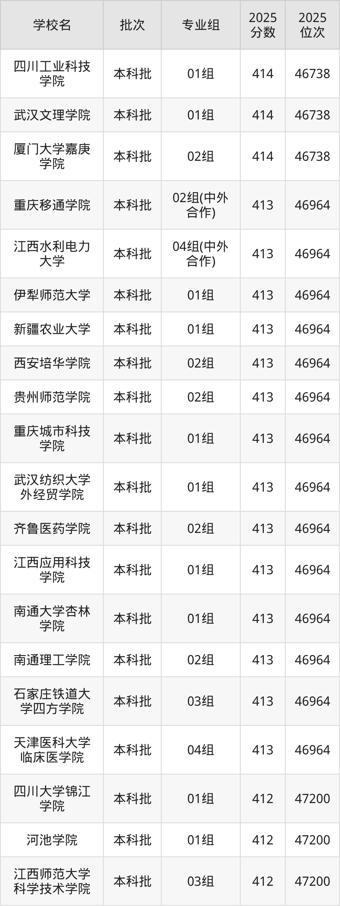 这些都是2026年高考47201名~47401名考生可以报考的大学,更多学校名单如下表所示: