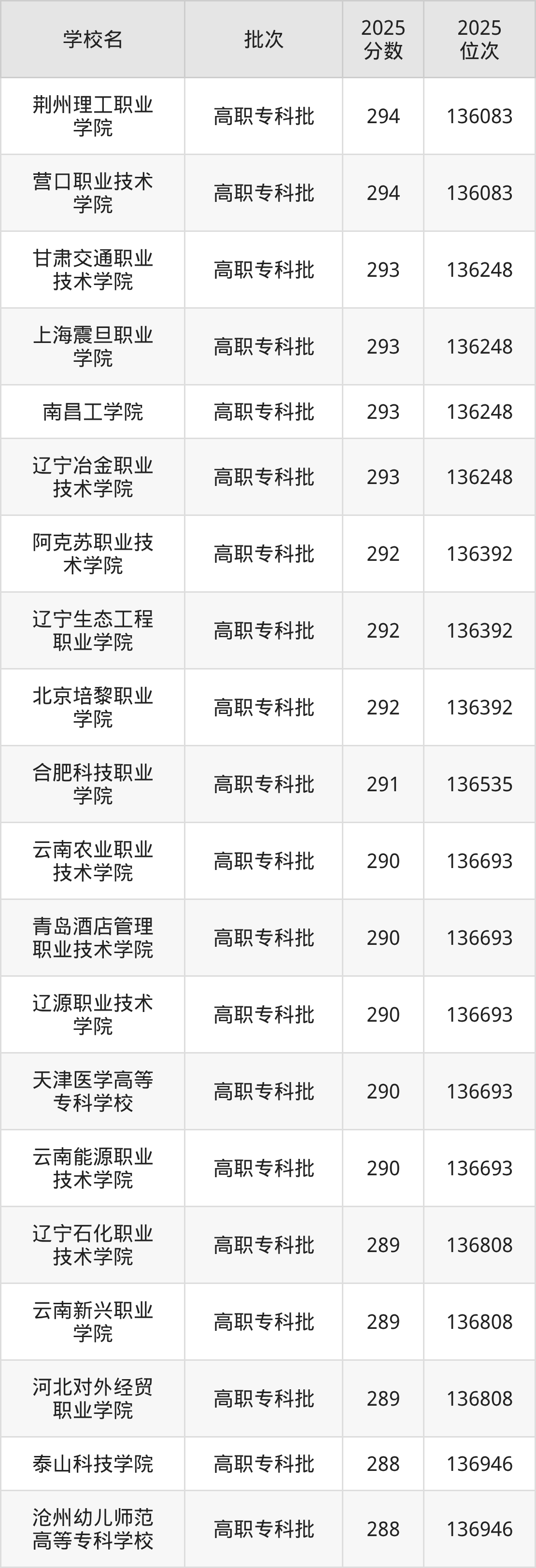 2025年辽宁高考物理类290分(136536名~136693名)能上的大学有青岛酒店管理职业技术学院、云南农业职业技术学院、云南能源职业技术学院、辽源职业技术学院等。
