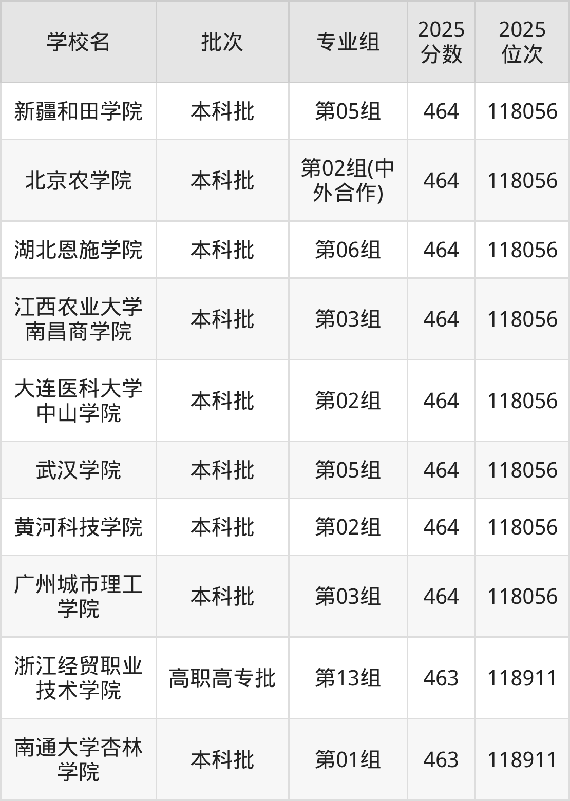 2025年湖北高考物理类463分(118057名~118911名)能上的大学有南通大学杏林学院第01组、浙江经贸职业技术学院第13组。