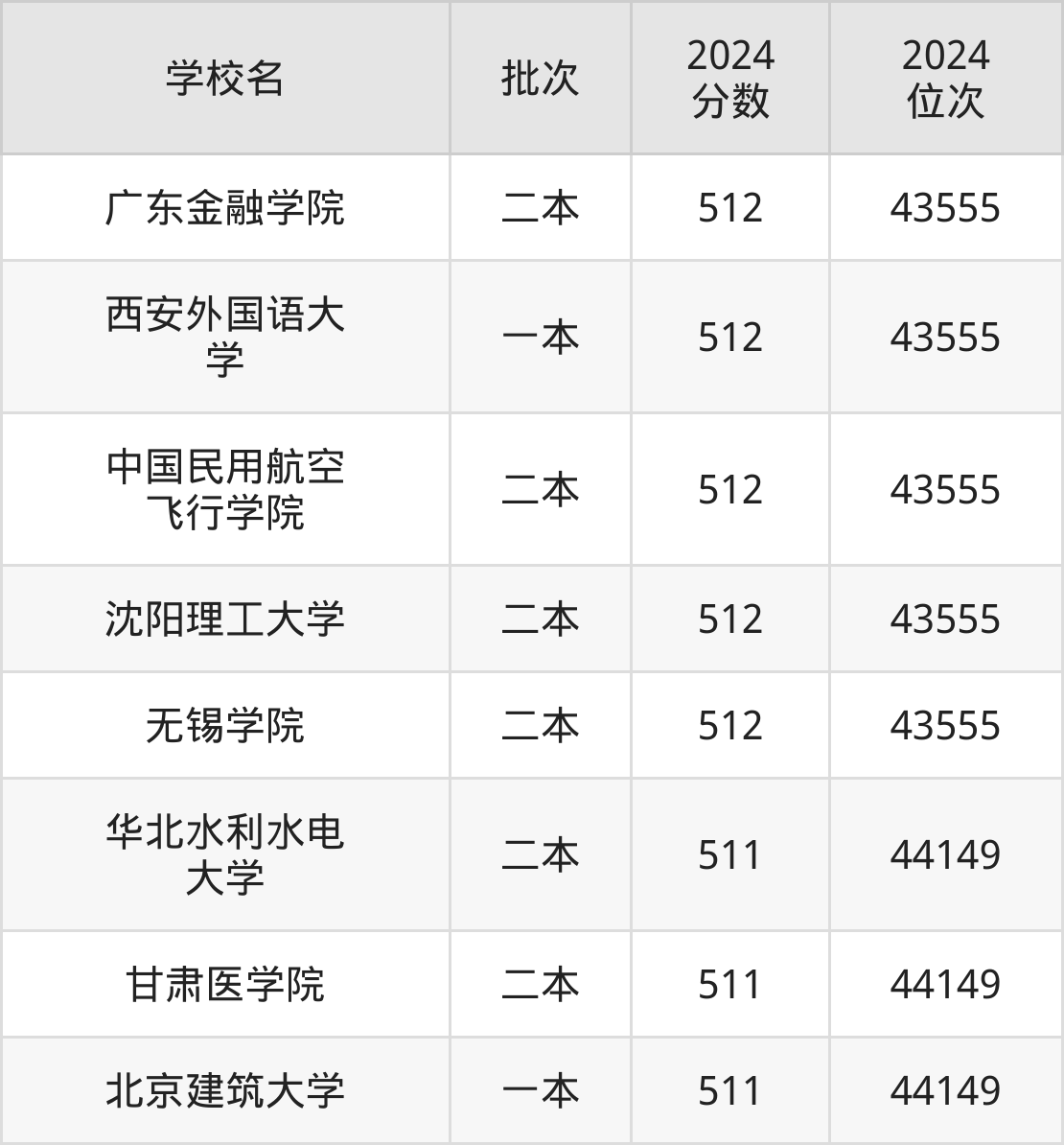 2024年云南高考理科511分(43556名~44149名)能上的大学有北京建筑大学、甘肃医学院、华北水利水电大学。