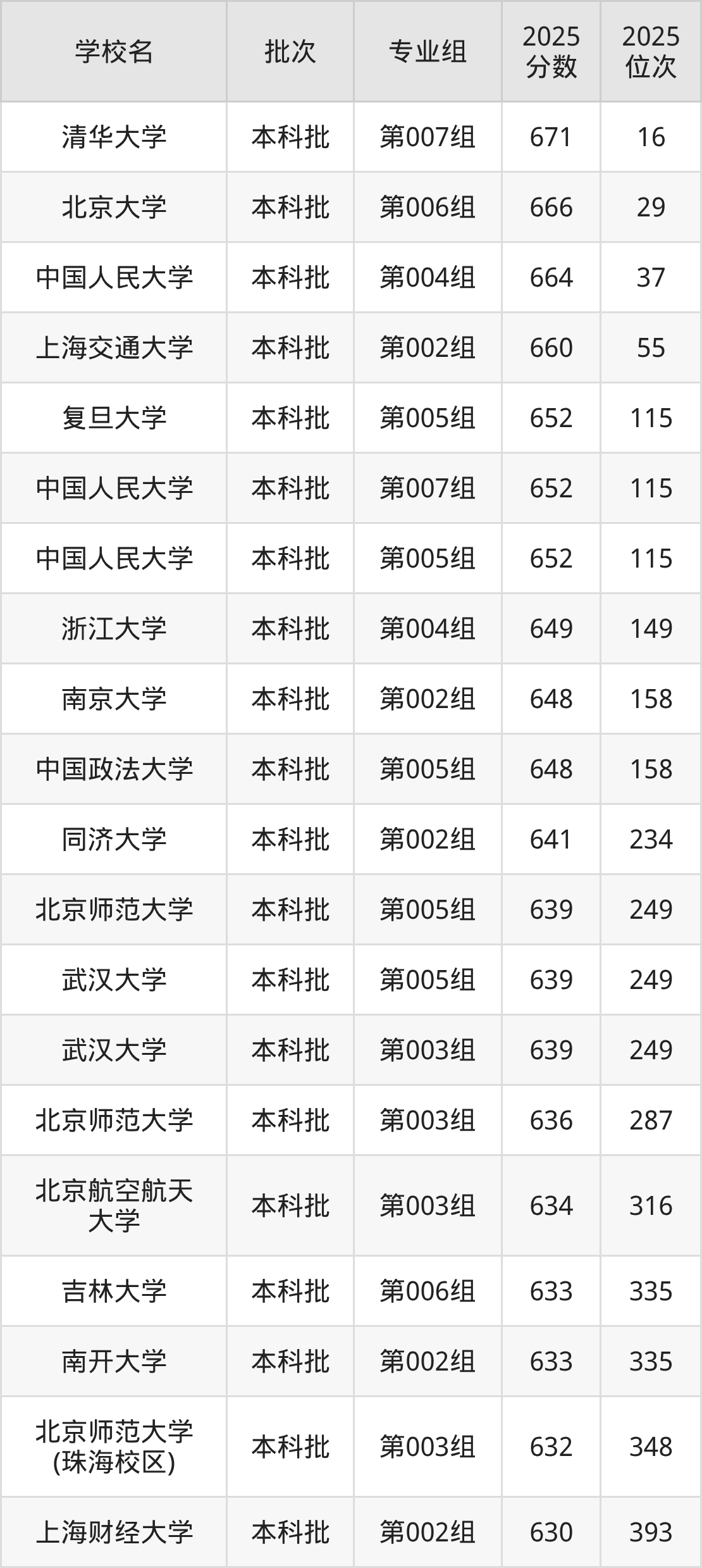 这些都是2026年高考物理类674名~706名考生可以报考的大学,更多学校名单如下表所示: