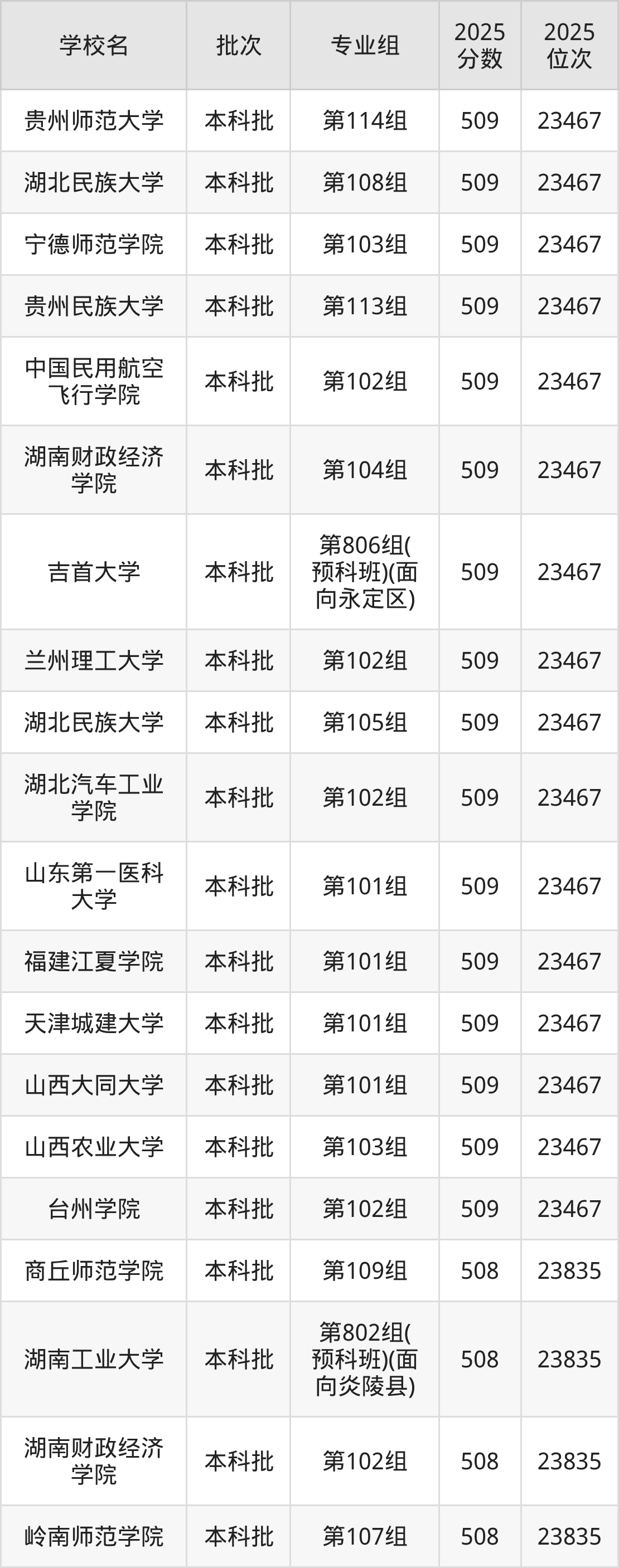 这些都是2026年高考历史类23836名~24224名考生可以报考的大学,更多学校名单如下表所示: