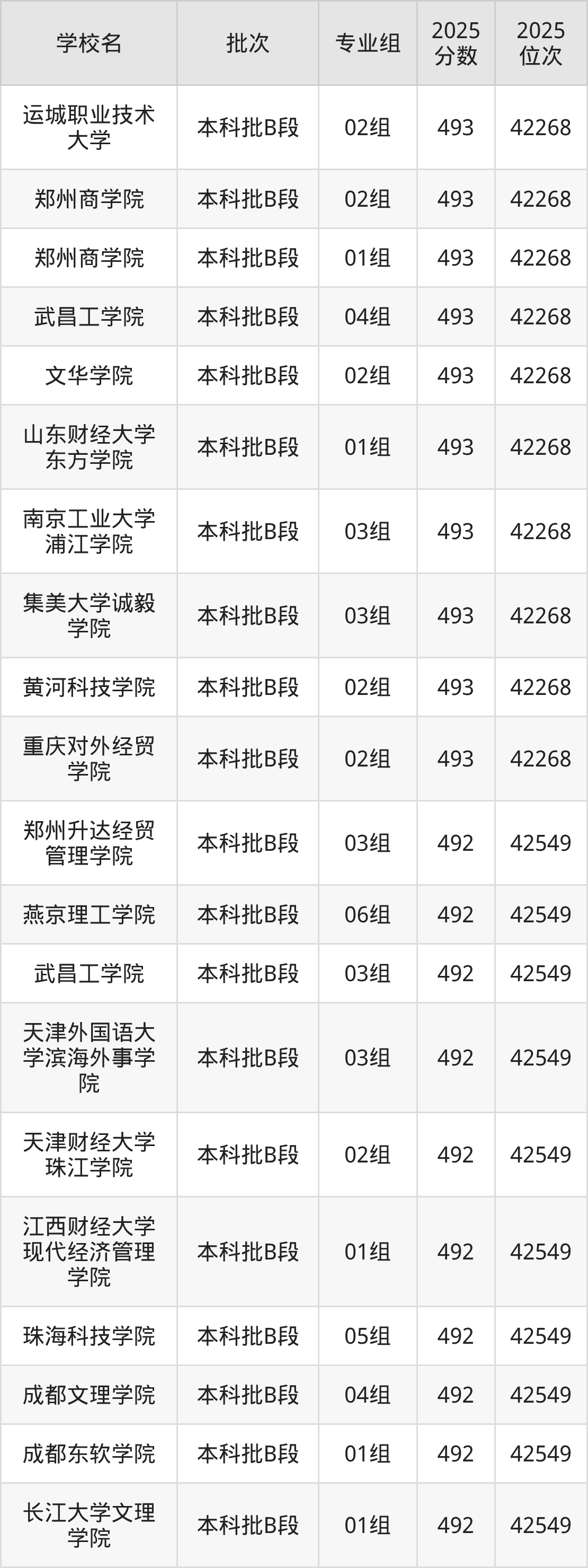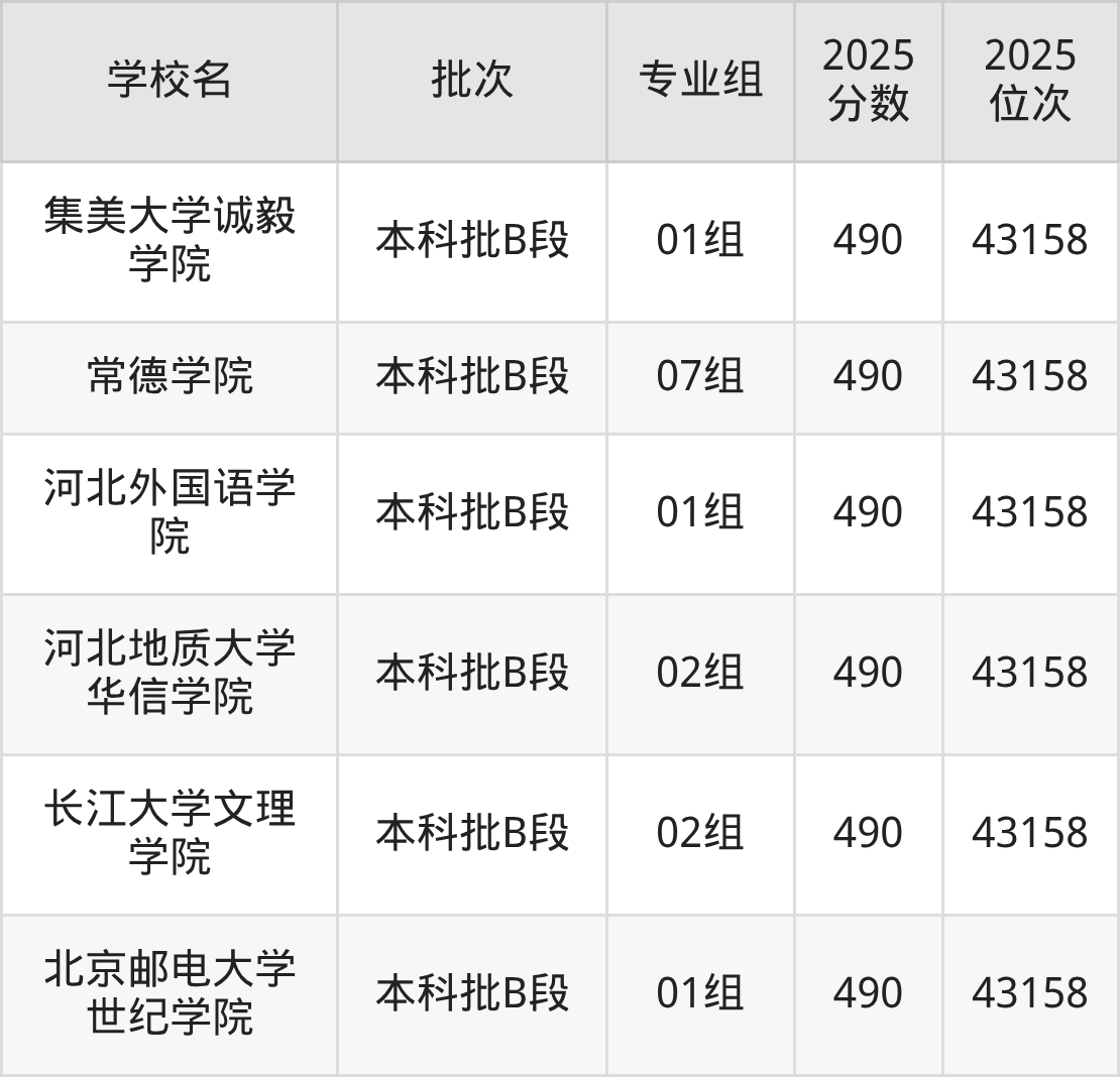 这些都是2026年高考42550名~42851名考生可以报考的大学,更多学校名单如下表所示: