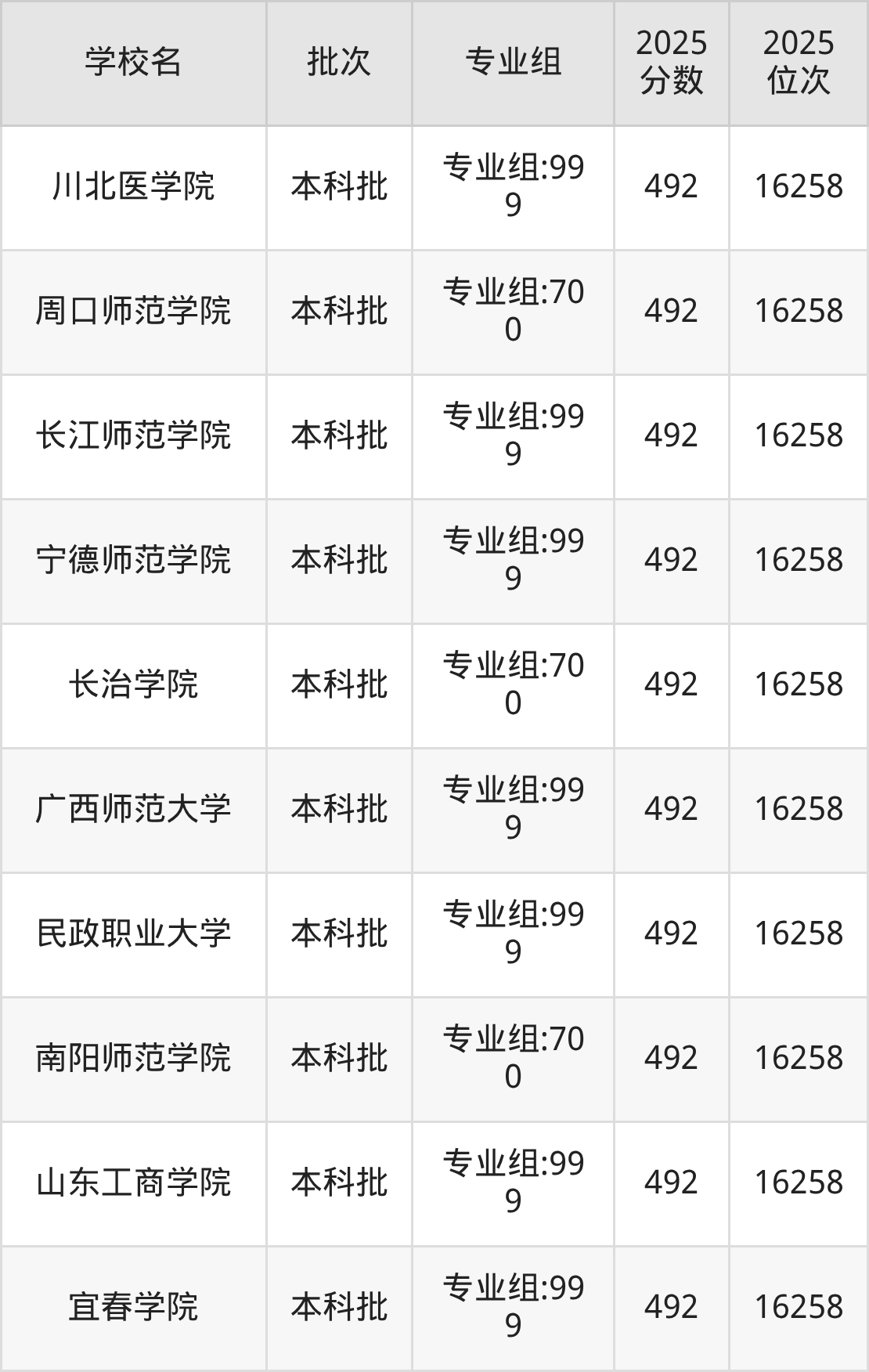这些都是2026年高考历史类15678名~15873名考生可以报考的大学,更多学校名单如下表所示: