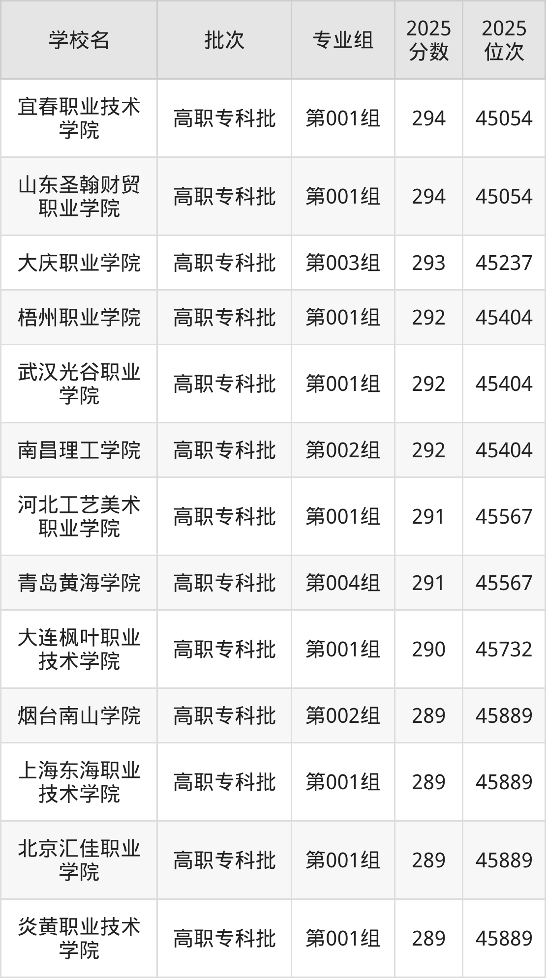2025年黑龙江高考历史类292分(45238名~45404名)能上的大学有南昌理工学院第002组、武汉光谷职业学院第001组、梧州职业学院第001组。