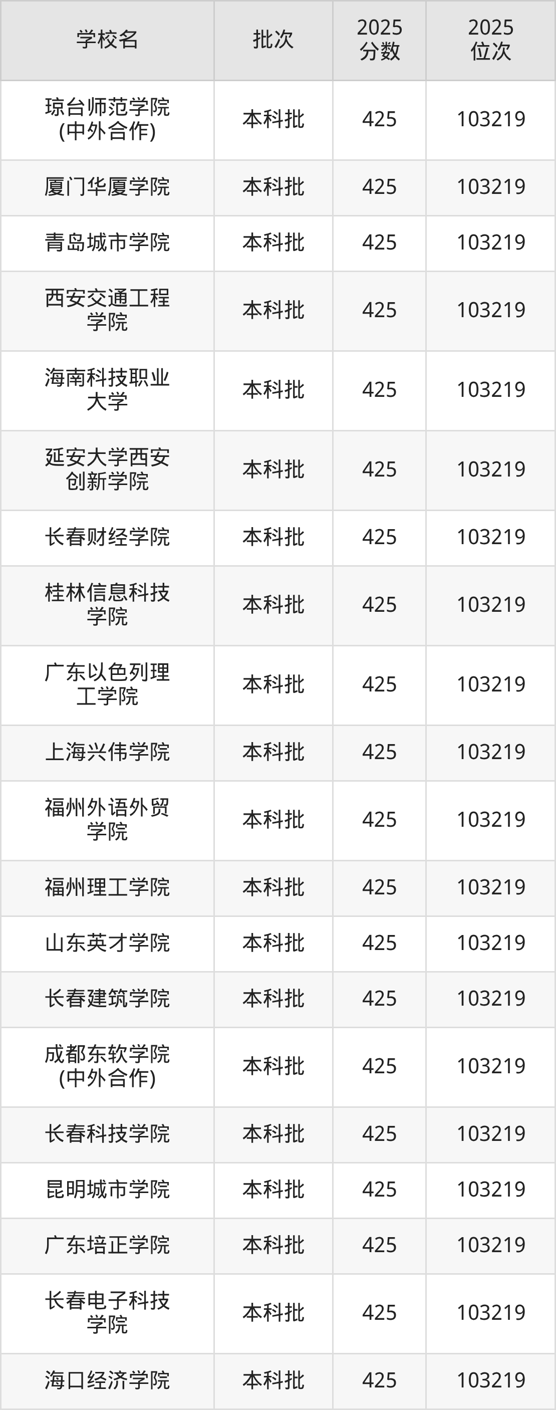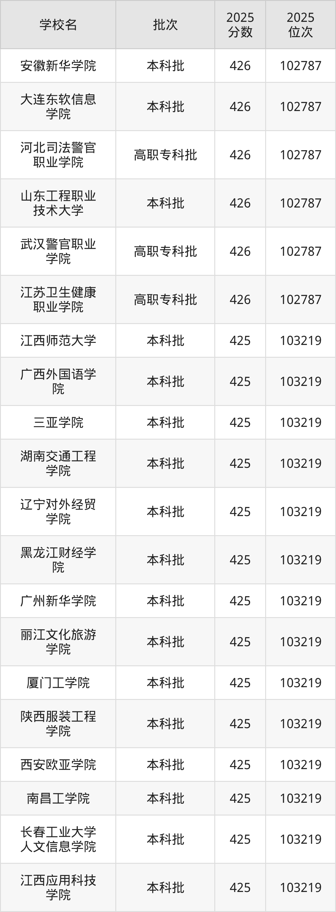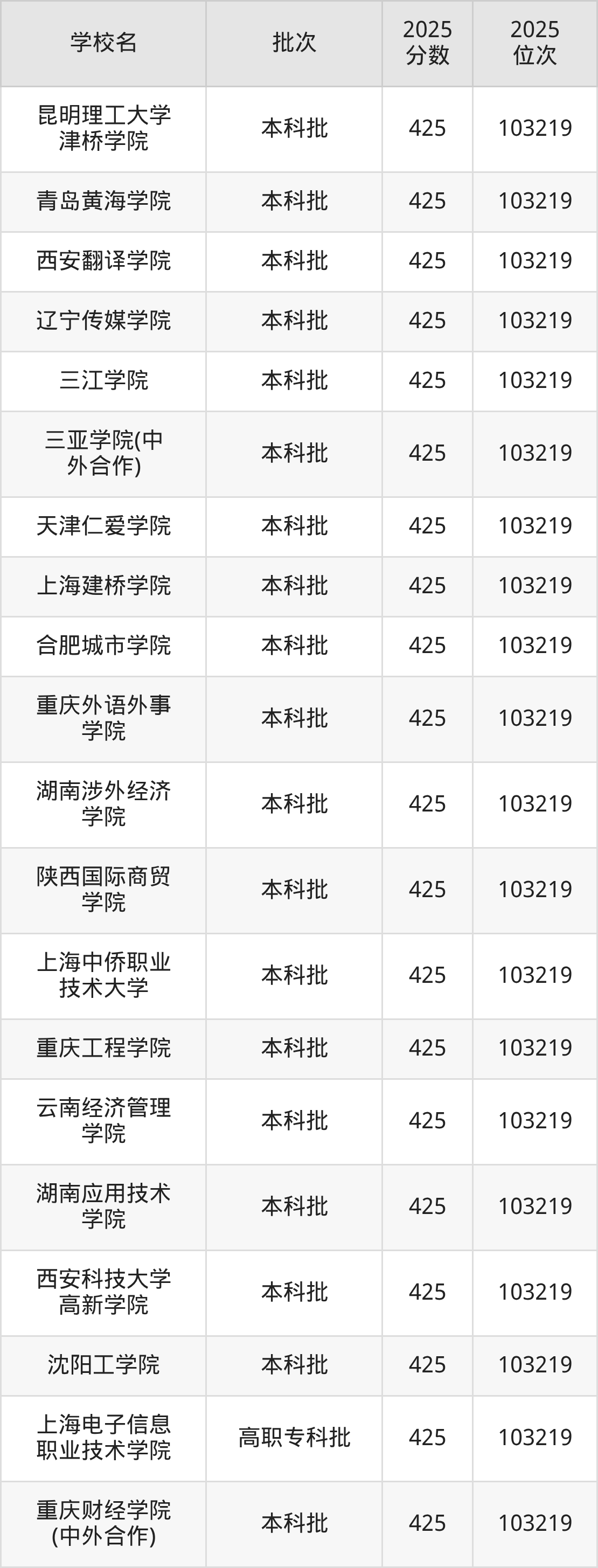 这些都是2026年高考物理类103220名~103653名考生可以报考的大学,更多学校名单如下表所示: