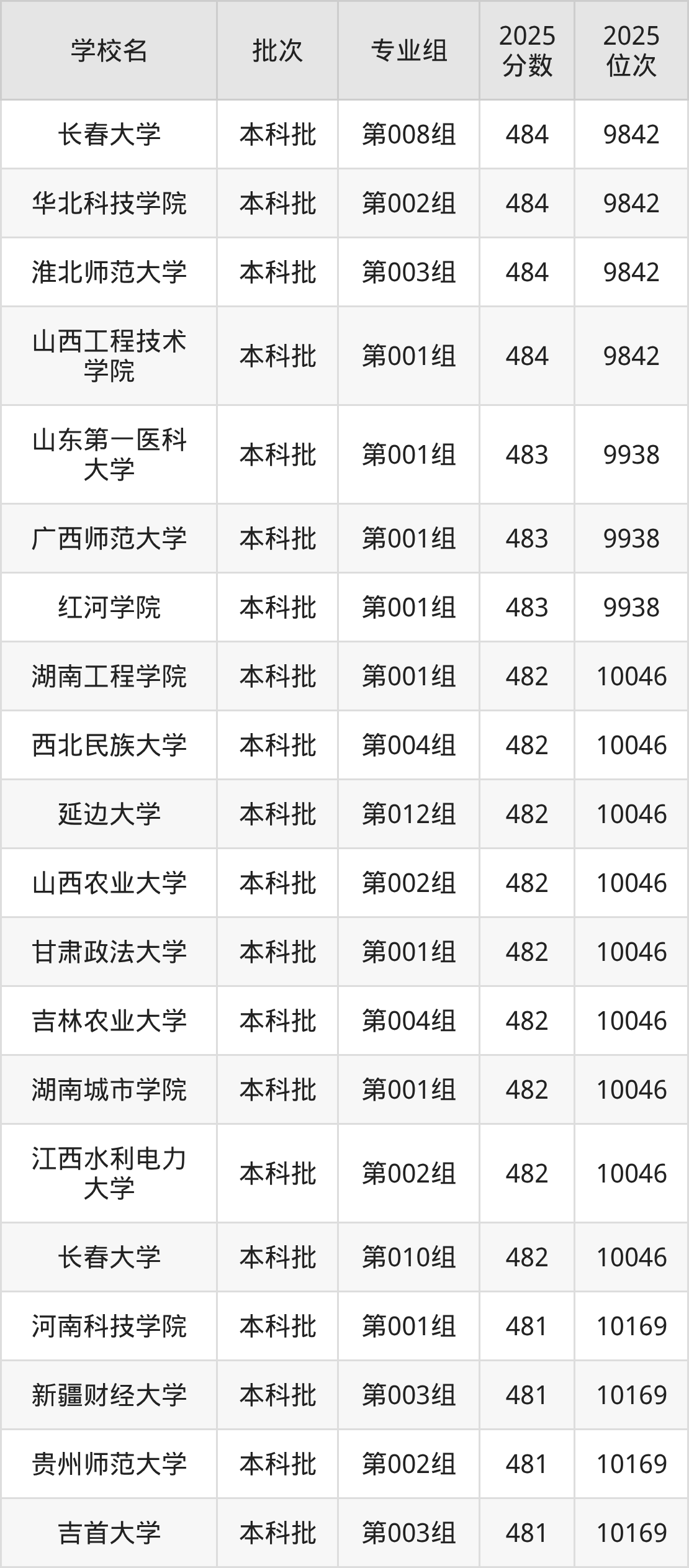 这些都是2026年高考历史类10287名~10395名考生可以报考的大学,更多学校名单如下表所示: