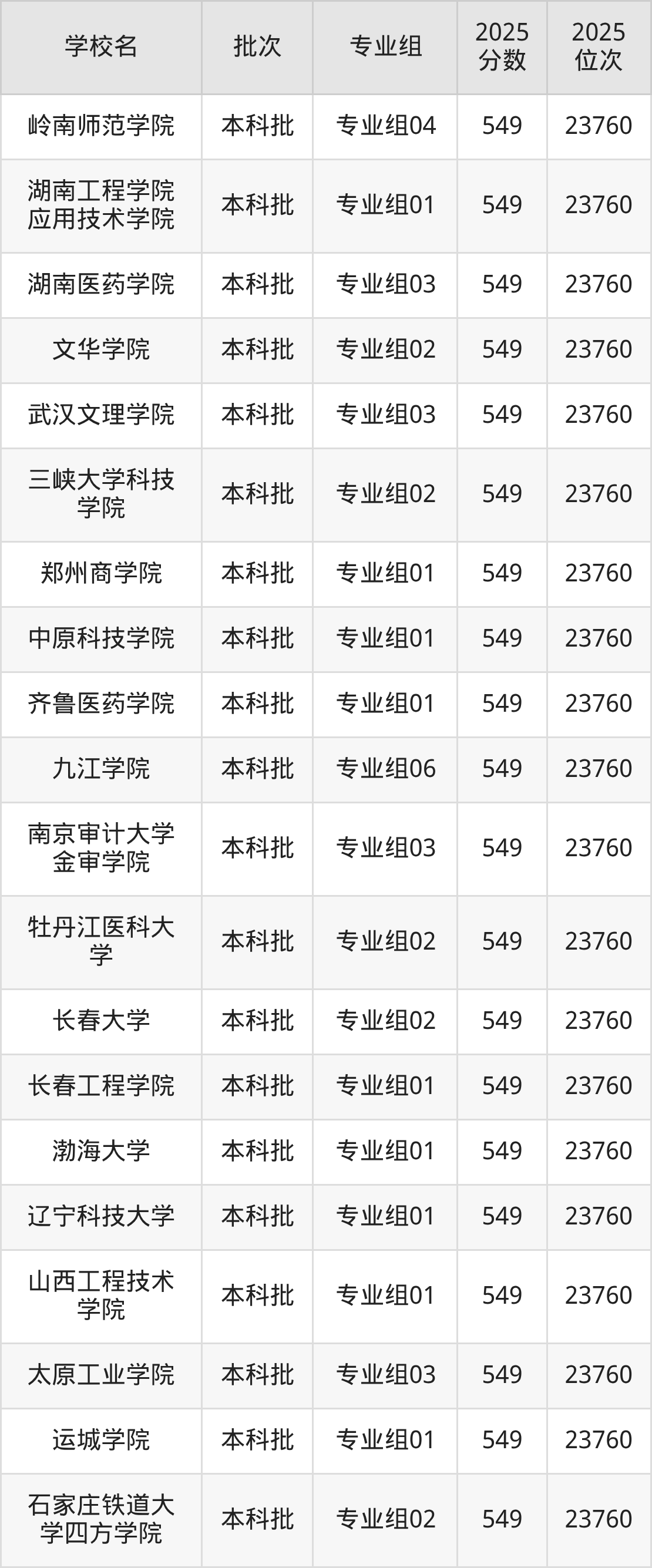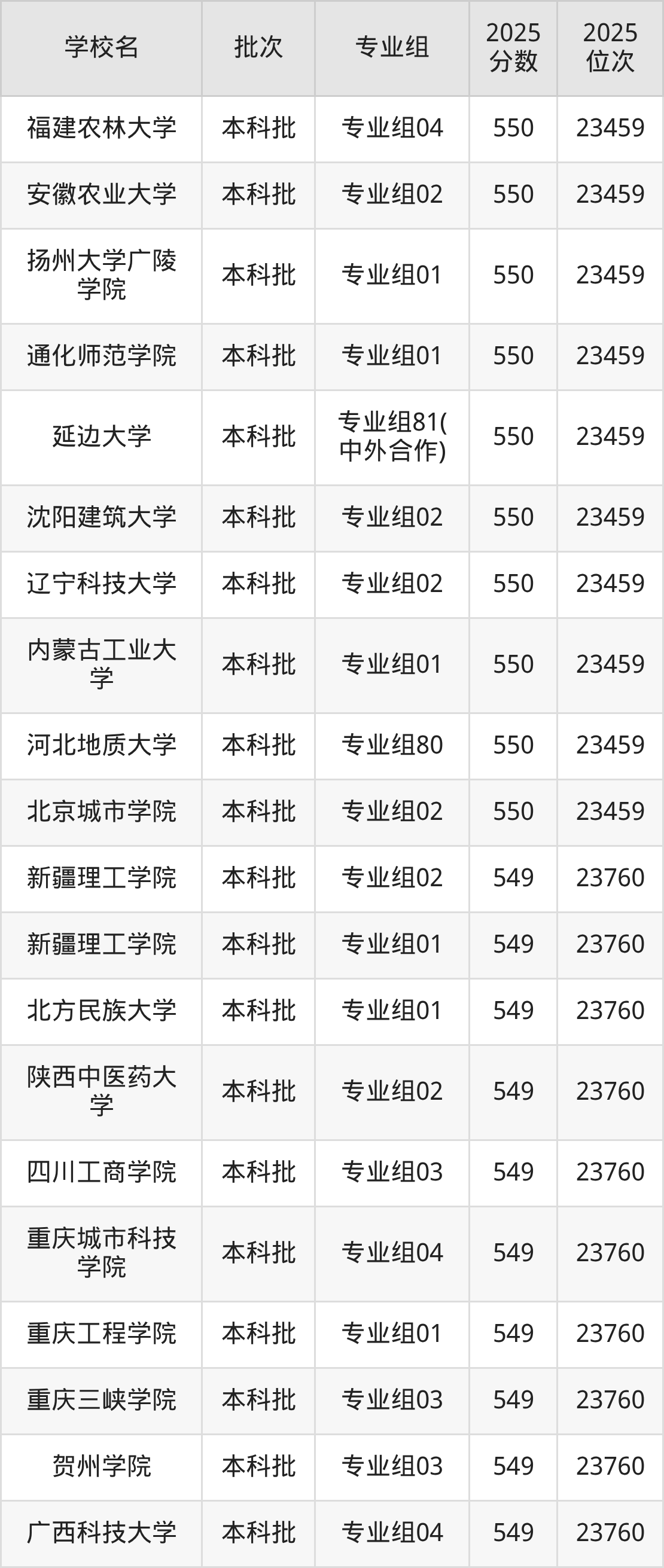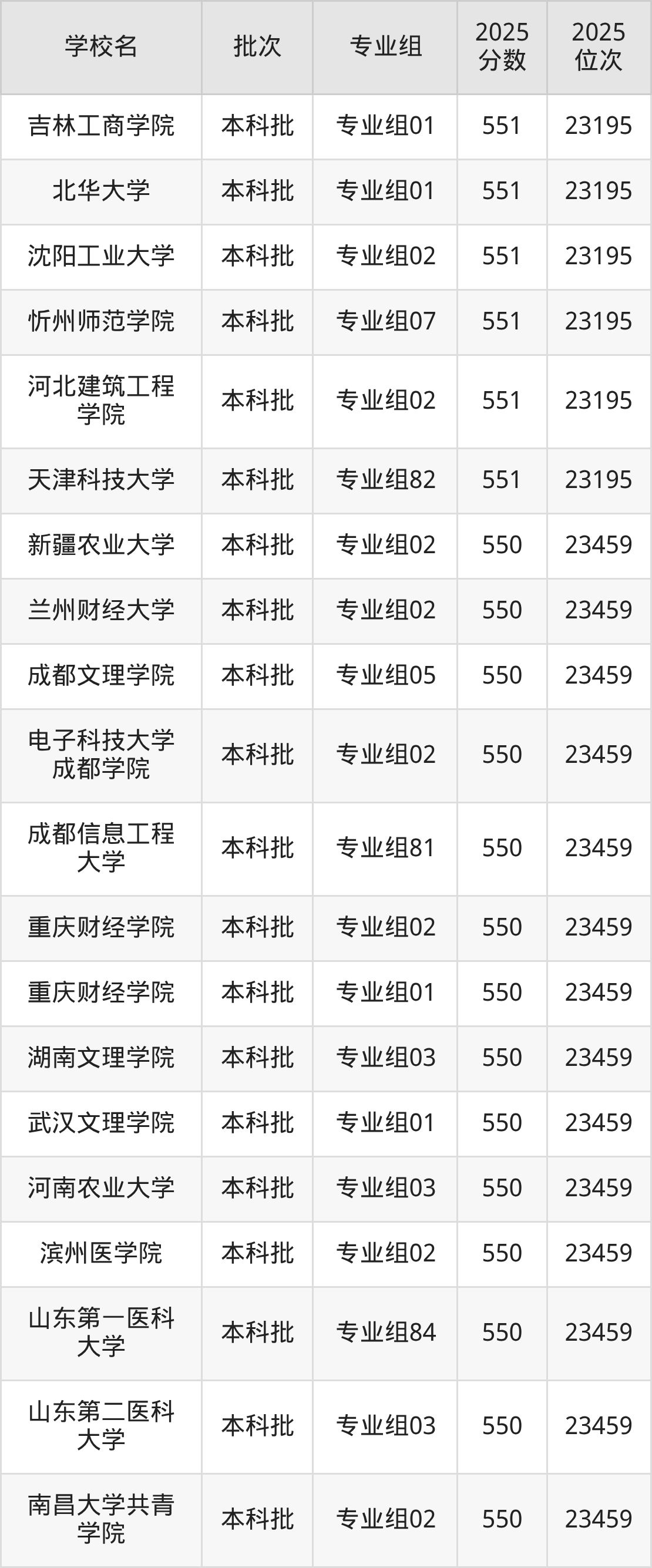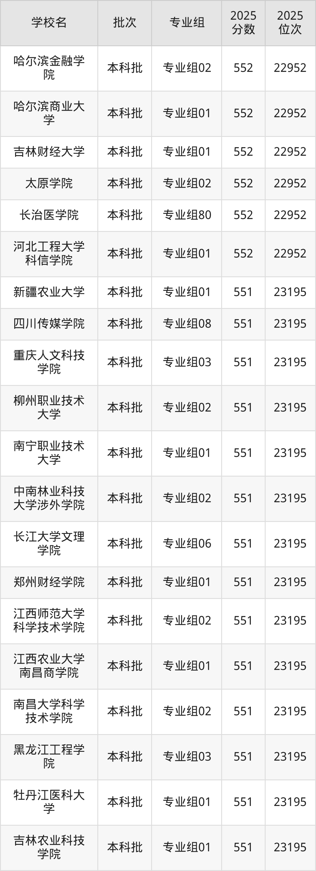 这些都是2026年高考23196名~23459名考生可以报考的大学,更多学校名单如下表所示: