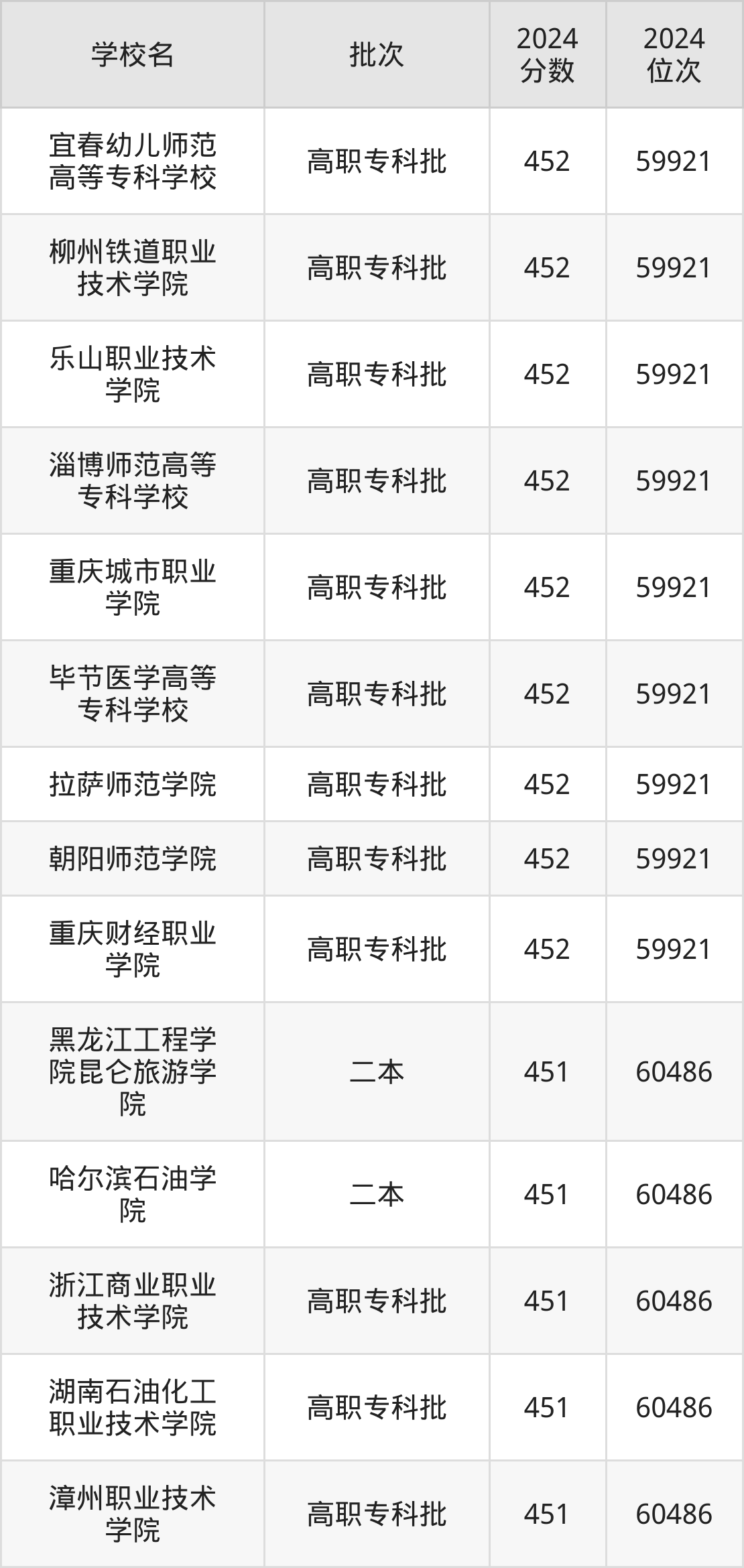 这些都是2025年高考文科59922名~60486名考生可以报考的大学,更多学校名单如下表所示: