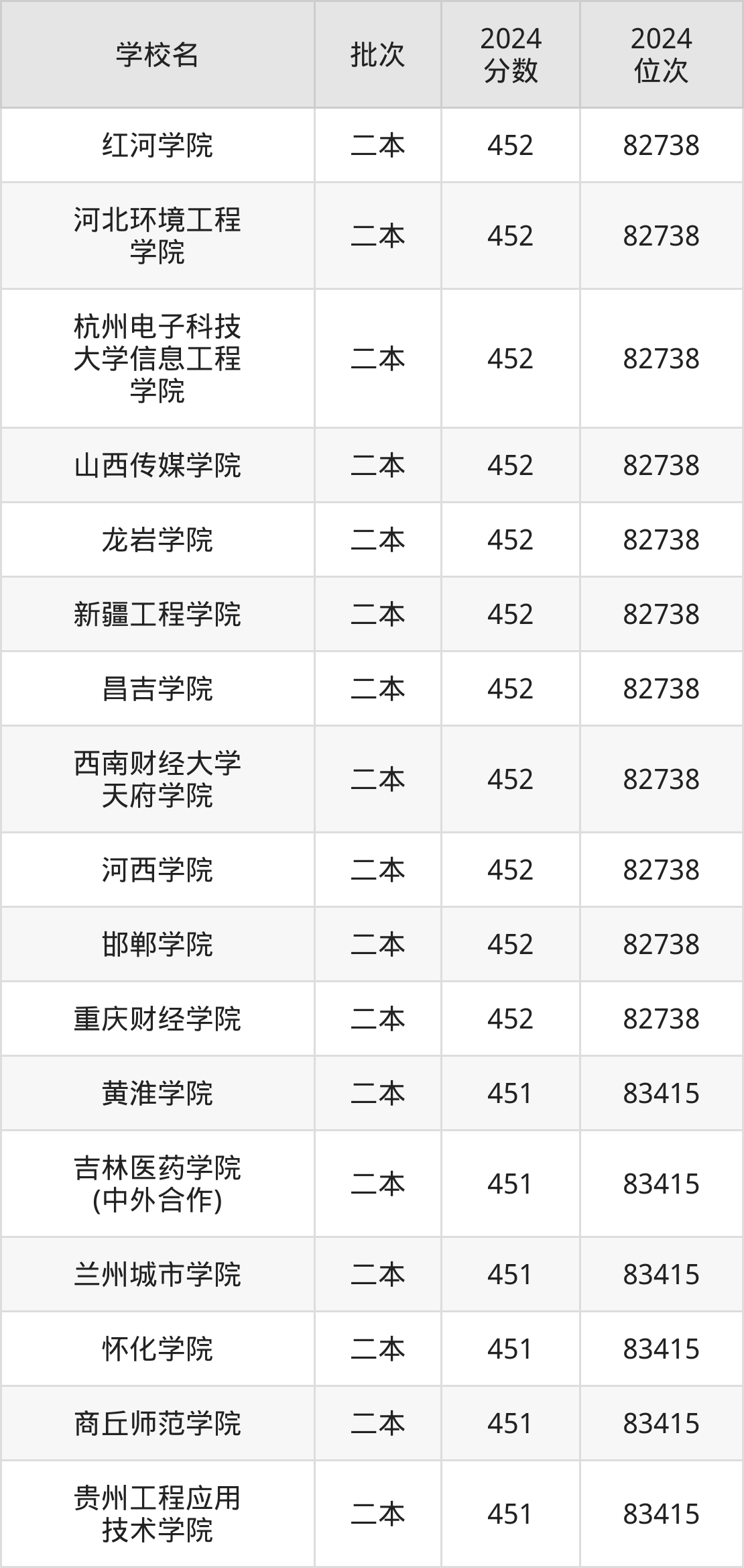 这些都是2025年高考理科82739名~83415名考生可以报考的大学,更多学校名单如下表所示: