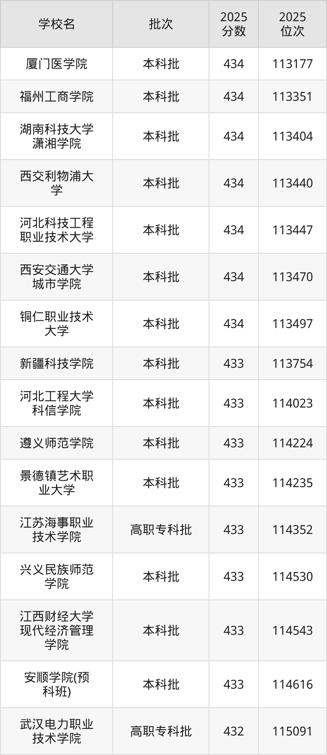2025年贵州高考物理类433分(113638名~114632名)能上的大学有江西财经大学现代经济管理学院、江苏海事职业技术学院、安顺学院(预科班)、新疆科技学院等。