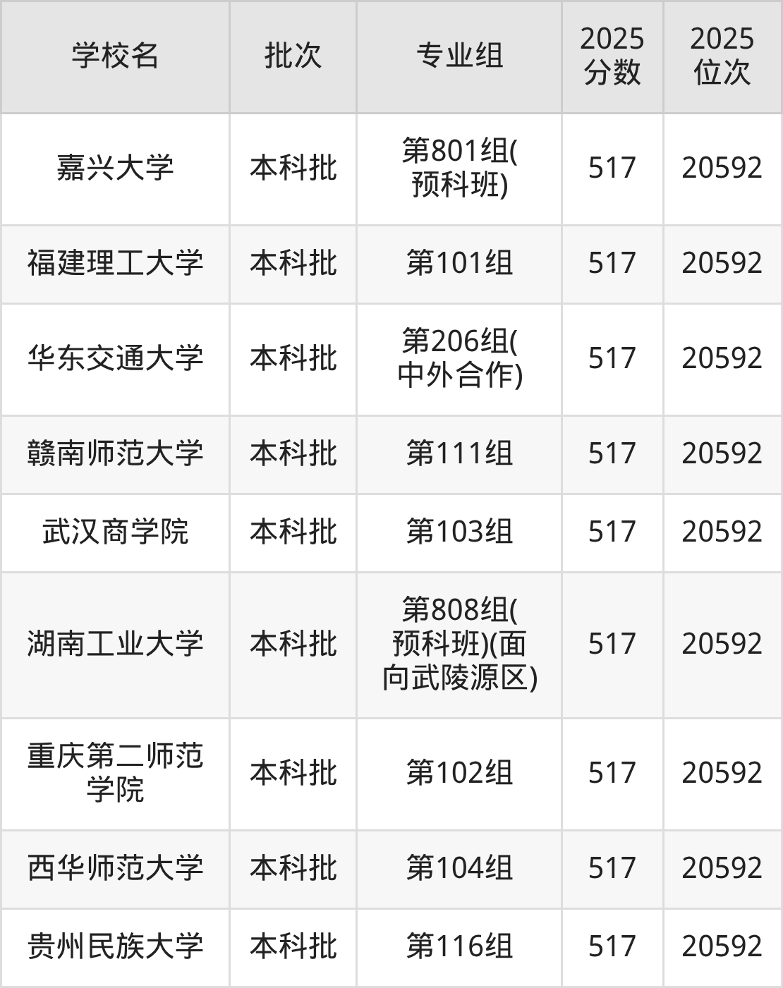 这些都是2026年高考物理类71120名~72077名考生可以报考的大学,更多学校名单如下表所示: