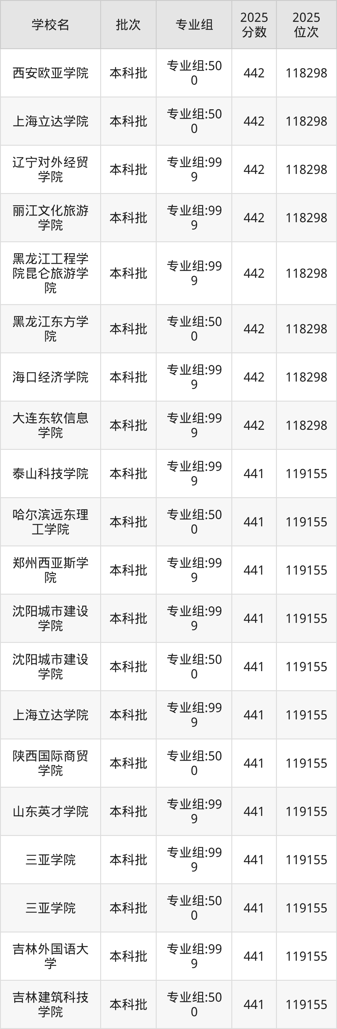 另外录取位次高于该区间(可冲)的有丽江文化旅游学院专业组:999(118298名)、海口经济学院专业组:999(118298名)等。