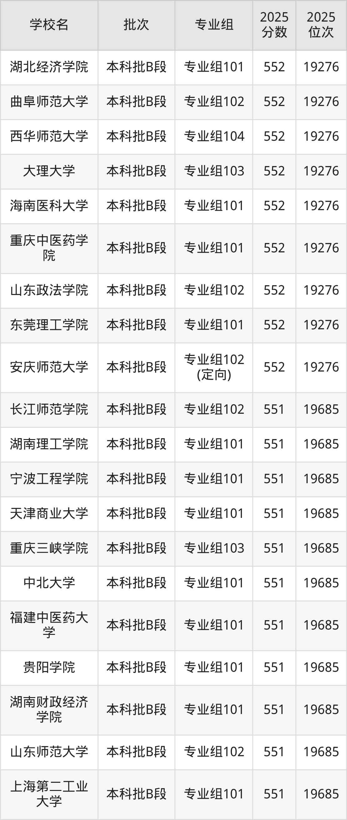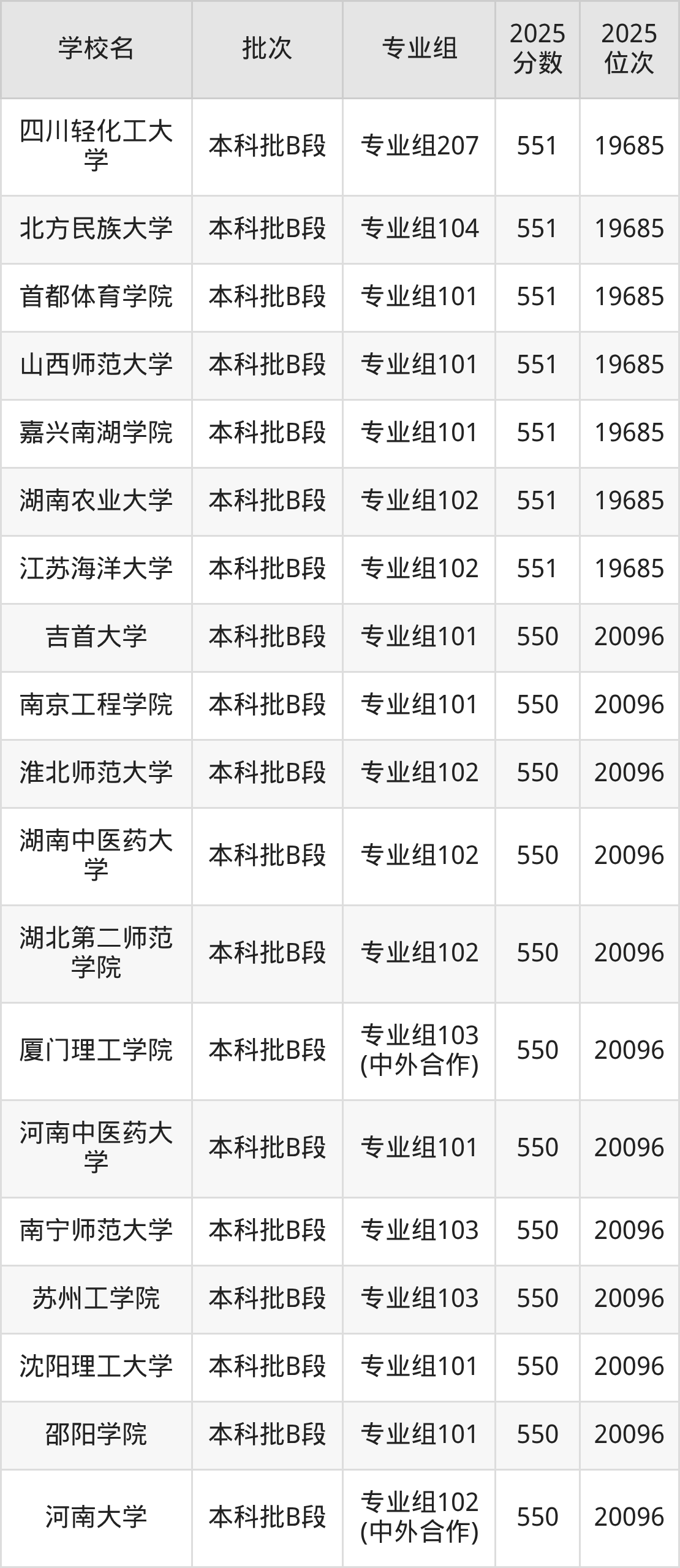 这些都是2026年高考历史类19277名~19685名考生可以报考的大学,更多学校名单如下表所示: