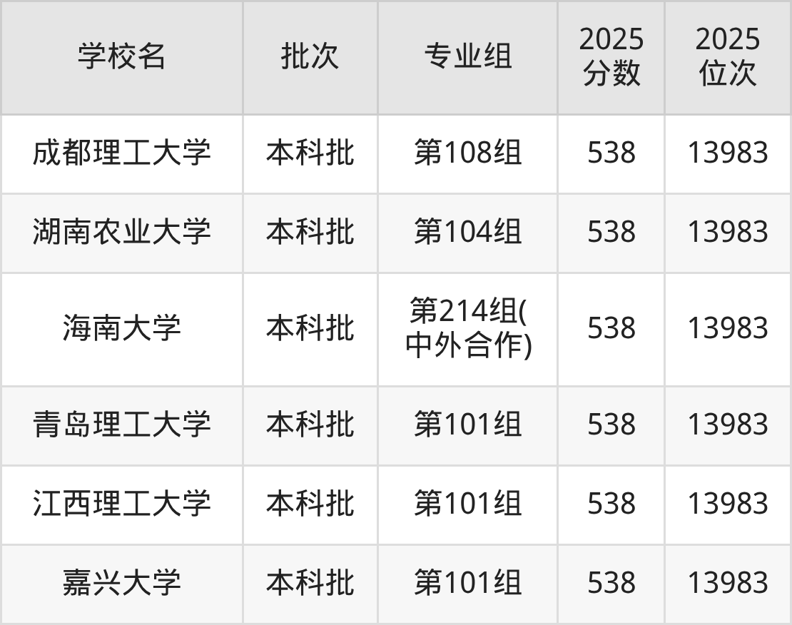 这些都是2026年高考历史类13407名~13696名考生可以报考的大学,更多学校名单如下表所示: